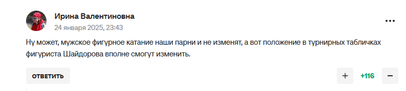 Цена олимпийского золота заметно дискредитирована, все понимают, что Малинин это как Пеле в футболе, на две головы выше других, но один раз перенервничал. Было бы два проката и зачёт по лучшему выступлению, то истинность соревнования заметно выросла бы, чтоб железно победил лучший, а тут рулетка, чемпик катает хуже десятерых человек в мире.