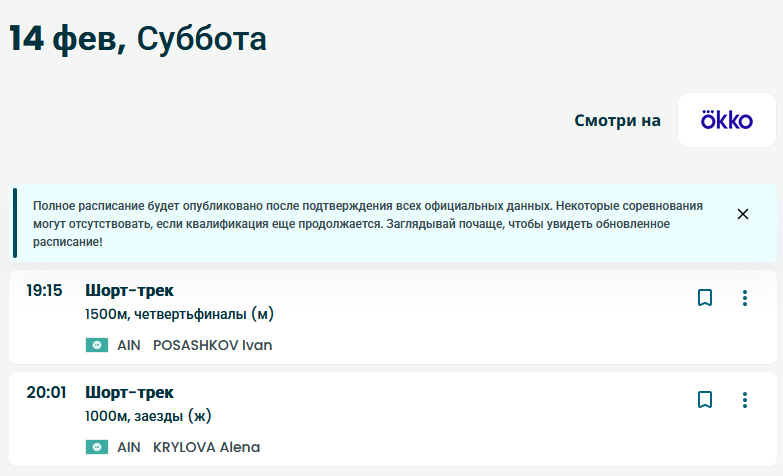 Алёна Крылова - шорт-трек 500м - не прошла квалификацию четырёхкратная чемпионка России (2024, 2025), обладательница Кубка России (2025)