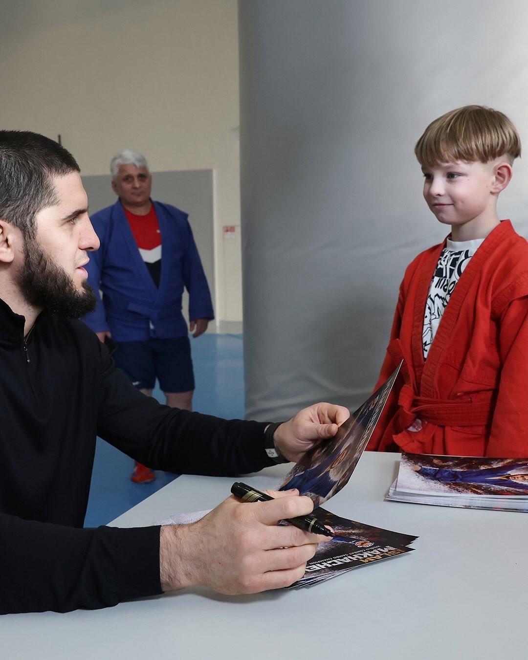 Церемония прошла 18 февраля в Международном центре самбо в Лужниках, где президент FIAS Василий Шестаков вручил Исламу именную куртку самбо с эмблемой федерации. Во время визита Махачев также посетил Музей самбо и осмотрел помещения Дома самбо.