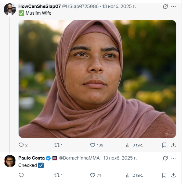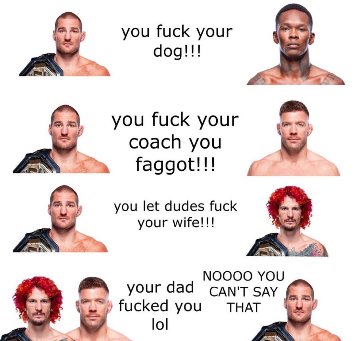 >>3295591 >>3295620 Кокрейн и Мурадов тоже типа женаты, несмотря на то, что на камеру, даже исключая мма-гомосятину, были гей-шлюхами. Это база мма-петушков
