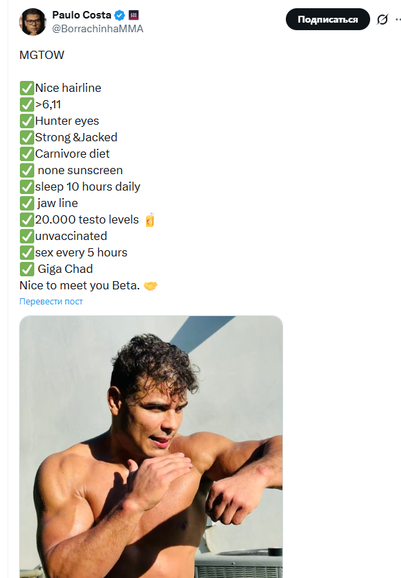 «мало кому не похуй женские мма. если взять самого слабого и мягкого парня, то он сможет отпиздить аманду нуньес. мы должны помнить, в чем женщины преуспевают: в рождении детей, материнстве, приготовлении еды, уборке. проблема в том, что мы дали им слишком много власти, чтобы разрушить общество»