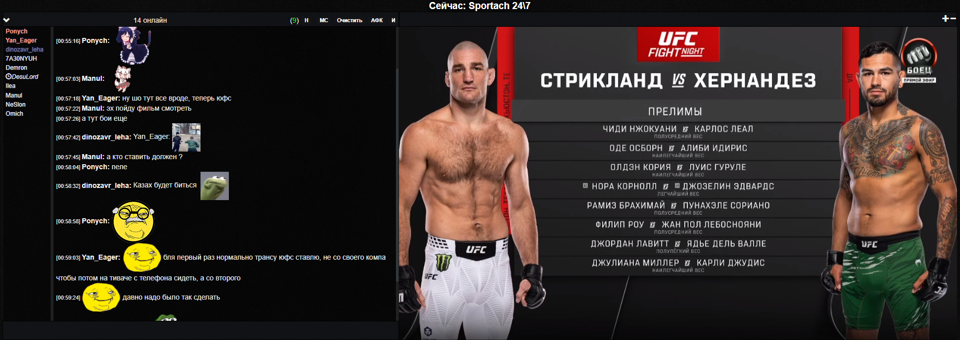 Не ну Прохазка ебанутый, такого валять заебешься, не? Может Иржи и прошел уже свой прайм, но все равно полутяж, который Гловера в конце 5 раунда задушил. Такой ебанет, уснёшь. Валять трудно. А чем ещё побеждать бывшему велтеру? Ган - Перейра жаль что только за времянку, пиздец. Наверное все же за бразила буду болеть, но француз тоже норм. Эх.