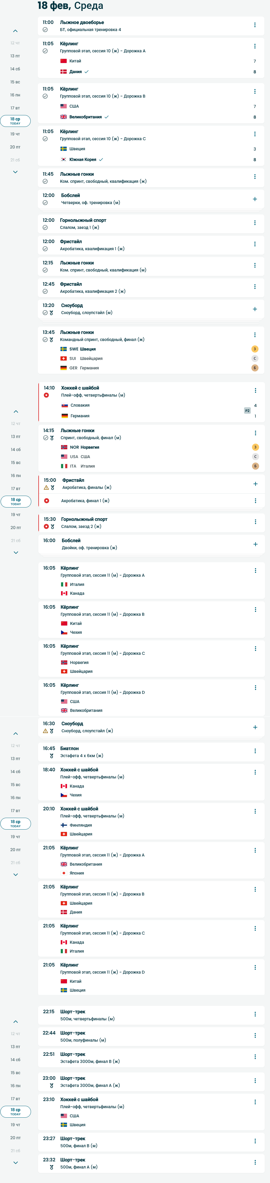 >>3295281 >Че за программа олимпиады, когда в последние дни нихуя нет соревов? Зато в первую неделю глаза разбегались, не знаешь что включить Погода поднасрала. Завтра и послезавтра опять передоз будет