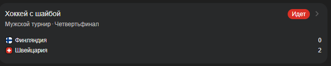 >>3294990 По-моему раздел «программы олимпиады», случайно наткнулся, зашёл со смартфона (поэтому сам нихуя не понял), ткнул в хоккей США—Швеция (до его начала), отмотал вниз на сантиметр (так как ничего не шло), там этот раздел и программа вроде называлась «олимпийская деревня», первой была