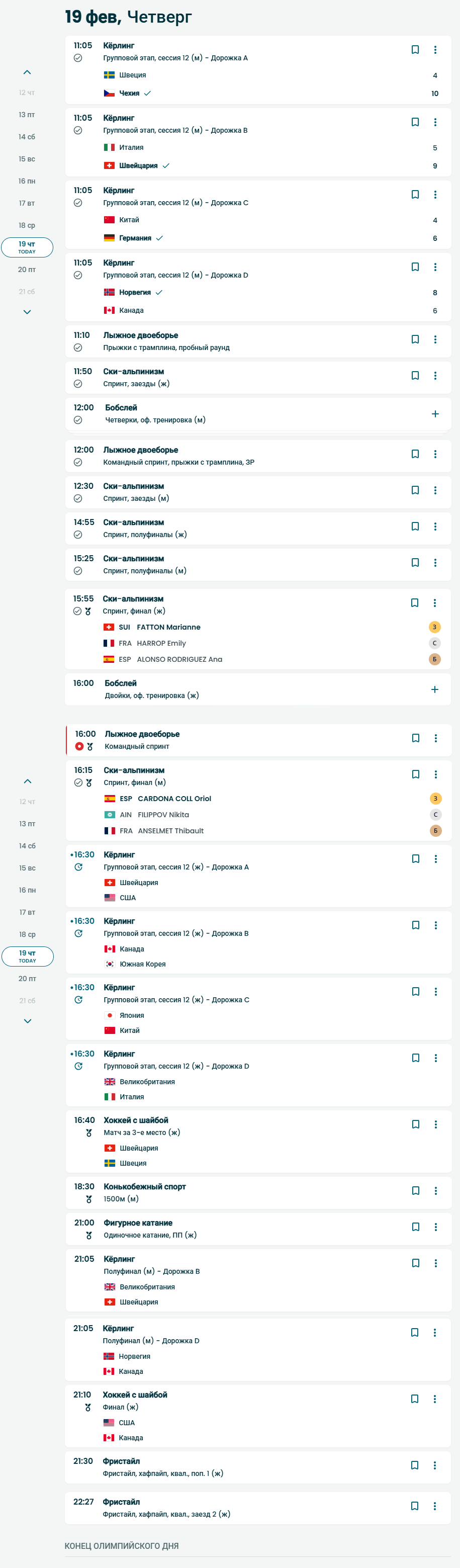 Сегодня в хоккей Великие и непобедимые США играют, также американские писюхи в кёрлинге сражаются во имя Императора планеты Земля — Трампа. ещё много фристайла, там много американских надежд, и бобслей двойки у США большие шансы на золото, в шорт-треке команд тож золото может залететь (там кому угодно может залететь)