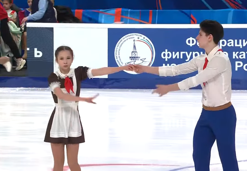 Майя Андреевна САРАФАНОВА с Моисеевой, заменительница Костылевой Москва, СШОР им. С.А. Жука 2a >красивый выезд, прыжок пролётный 3r поёт на выезде 3z3t >немножко близко к бортику >это же не влияет на оценку stsq3 трогает лёд во всех местах и крутит попой Достойная замена >подпитывалась флюидами Коляды >глазками стреляла