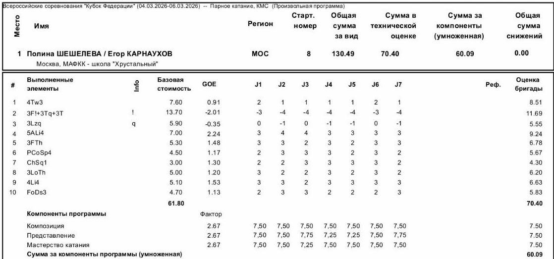 Хватит издеваться над Парсежкой! Опять вторая по технике и последняя по компам. Понятно, что Тутба на неё забила. Пора уходить к норм тренеру или менять федру.
