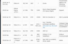Zuma ожидается не ранее 4-го января, Falcon Heavy Demo Flight где-то в январе - по словам Маска, полезной нагрузкой в первом полёте FH будет Tesla Roadster. Кроме следующих Иридиумов, к реюзной содомии присоединяются три спутника RADARSAT (все летят на одной ракете), которые полетят где-то в 2018. Первый испытательный полёт Dragon 2 ожидается в апреле.
