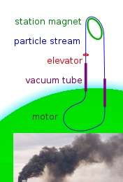 Even if all of the tower's power sources failed simultaneously, it would still take a long time for the tower to begin suffering. The kinetic energy stored inside the circulating loop of projectiles is vastly greater than the amount lost to inefficiencies, so it would take many hours or even days for the velocity of the projectiles to drop enough to cause problems in supporting the tower's mass. The round trip time for the projectiles alone provides some safety margin; in Hyde's concept design it takes each projectile over three hours to complete one loop, so even if the projectile stream was completely cut off (by the destruction of the top or base station, for example) there would be some time for evacuation of the remaining tower structure and regions that might be affected by significant pieces of falling debris.