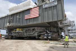 Транспортёр CT-2 впервые за 3 года снова заполз на площадку 39B - для примерочных испытаний. Как ни странно для NASA, с модификацией площадки и транспортёра они не обосрались с первого раза, всё подошло.Насколько я понял, они оба - и стартовая площадка, и краулер - полностью готовы к весёлым манипуляциям с SLS.