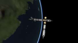 Аэроторможение выбрал удачно, до 41км. Сгорели только нижние четыре RCS-сопла, не жалко, у меня ещё восемь. После долгого экономичного сближения со станцией в течении нескольких десятков витков, наконец сравняли орбиты и состыковались. А тем временем вторая экспедиция будет на Минмусе только через 8-9 дней, сейчас они висят в апокербии с околонулевой скоростью.