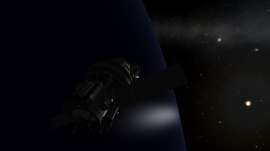 Будильник сработал четко, после скругления орбиты сразу сделал наклон на спасаемого ученого. Садиться придется на темной стороне между полюсом и экватором — хорошо что у меня монитор поддерживает ночной режимвыкрученная на максимум яркость лол. Уже в который раз замечаю неприятный баг — солнечные батареи перестают вырабатывать электричество, лечится только загрузкой сохранения.