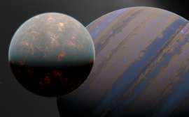 Нашел планету со страшными красными облаками рядом с углеродной звездой.