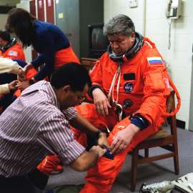 >>455839У прототипа скафандра видимо нет еще системы терморегуляции. Просто внешняя ткань сшита на манекен. А вот у мужиков там уже видно, что есть толстая подложка под поверхностной тканью.