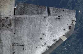 Там было не "пробивается", а "отбивается". Плитки не раскололись, а отвалились от удара куском льда, отвалившегося с бака.