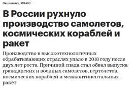 В России рухнуло производство самолетов, космических кораблей и ракетПодробнее на РБК:https://www.rbc.ru/economics/06/04/2019/5ca72bfa9a7947fcb5c578f2?from=from_main