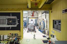 Макет капсулы AAT-2 уже установлен на петарду и ждёт своего часа через месяц.Тем временем в MAF, как и обещали, уже начали приваривать водородный бак к верхней части ступени. Делается всё по новой "горизонтальной схеме", которую быстро выдумали когда все пообсирались с намёков Брайдестайна о том, что отстающую по всем возможным срокам SLS можно немножечко прирезать. Изначально всё планировалось делать в здании вертикальной сборки (высокая пристройка к йоба-цеху MAF) в вертикальном, собсно, положении, но потом внезапно оказалось, что горизонтально собирать проще и быстрее.
