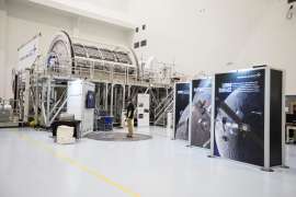 Капсулу EM-2 посадили в "птичью клетку" - на лонжероны крепят лапы. Затем капсулу испытают давлением и начнут накладывать на капсулу все компоненты - изнутри и снаружи.