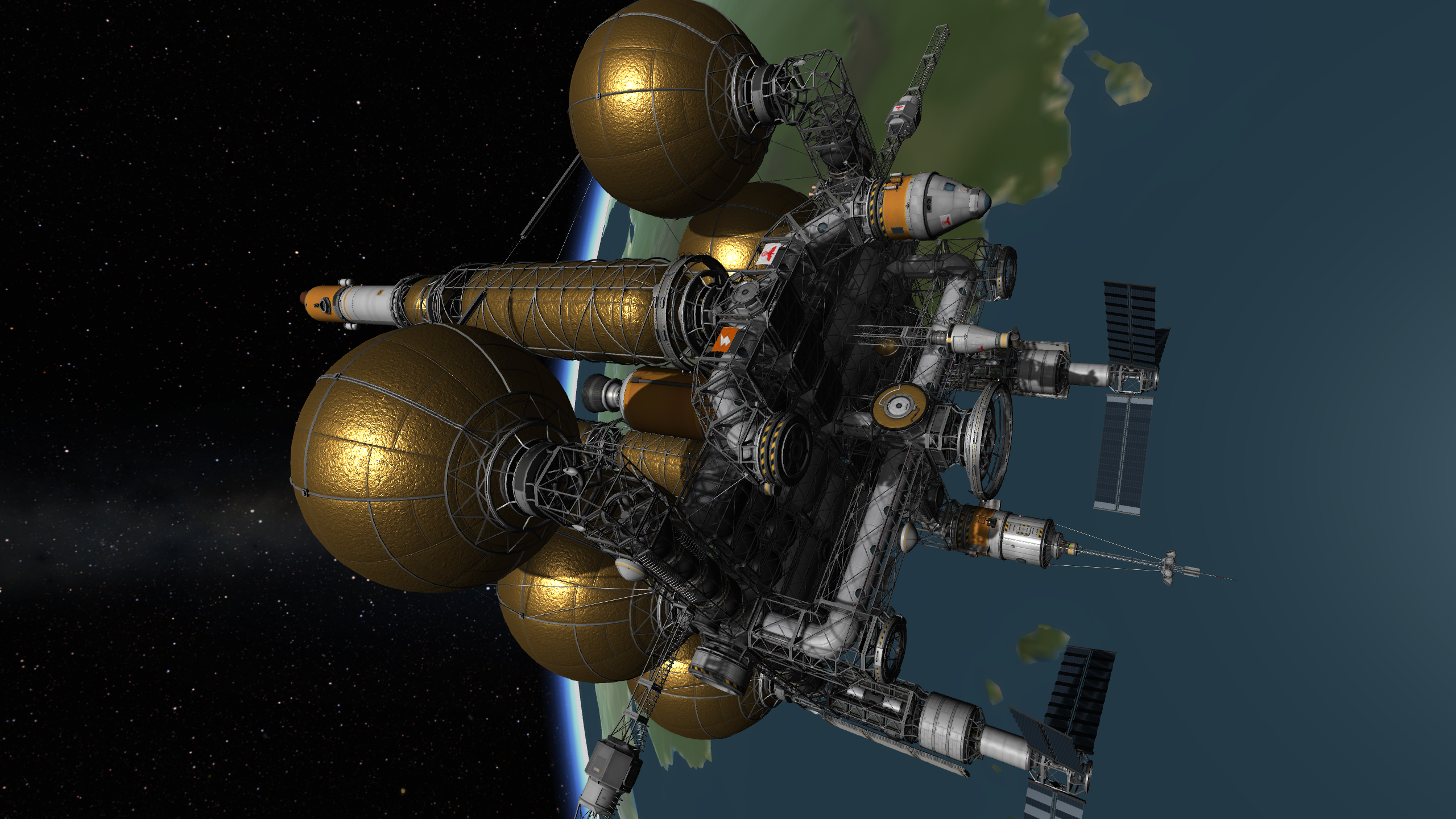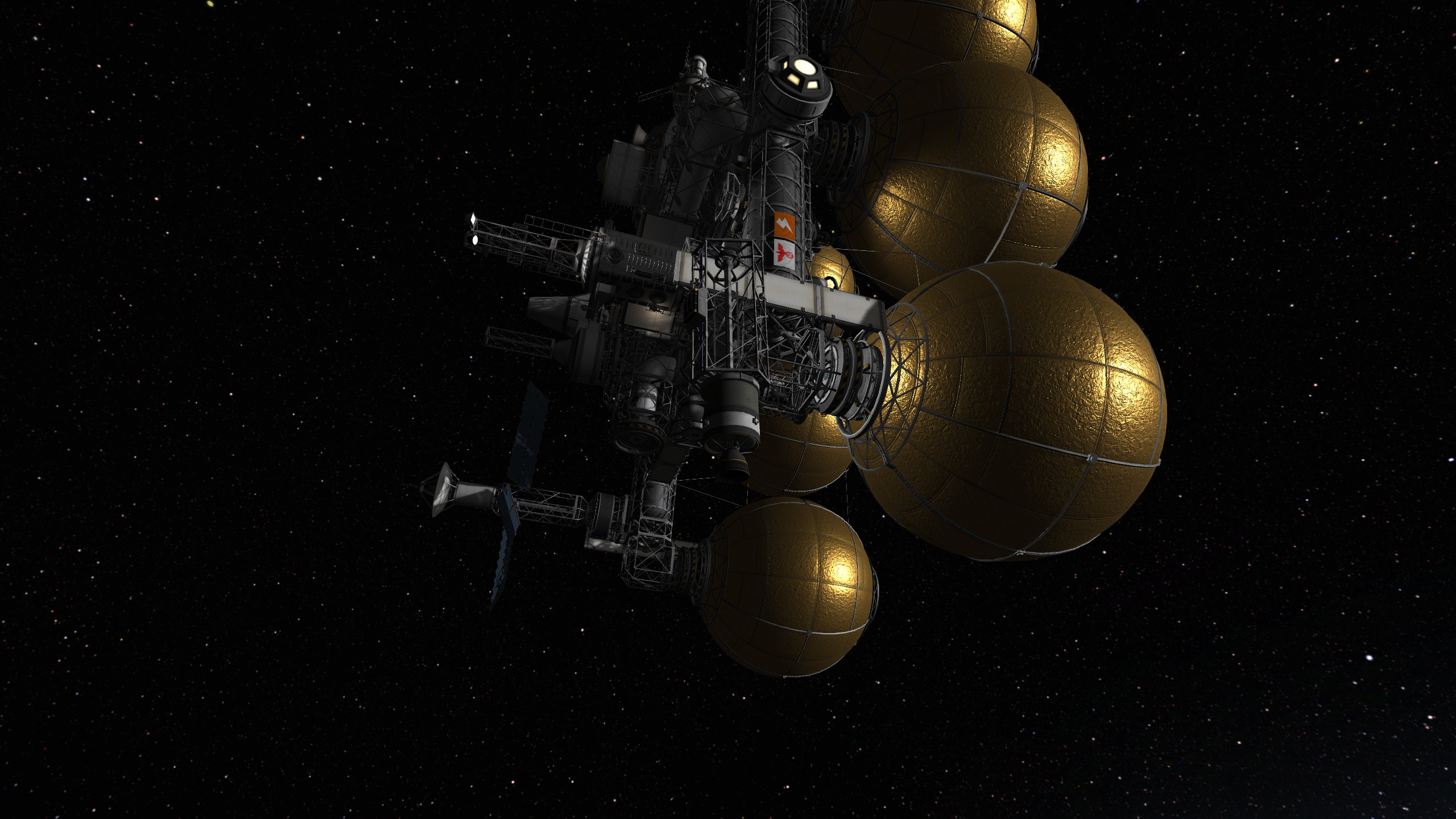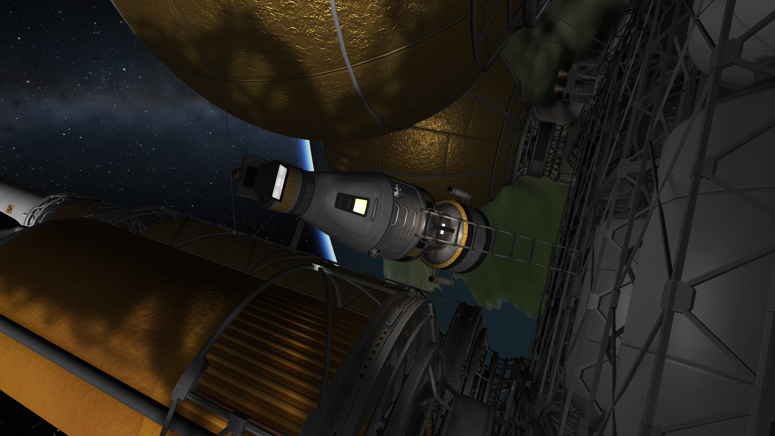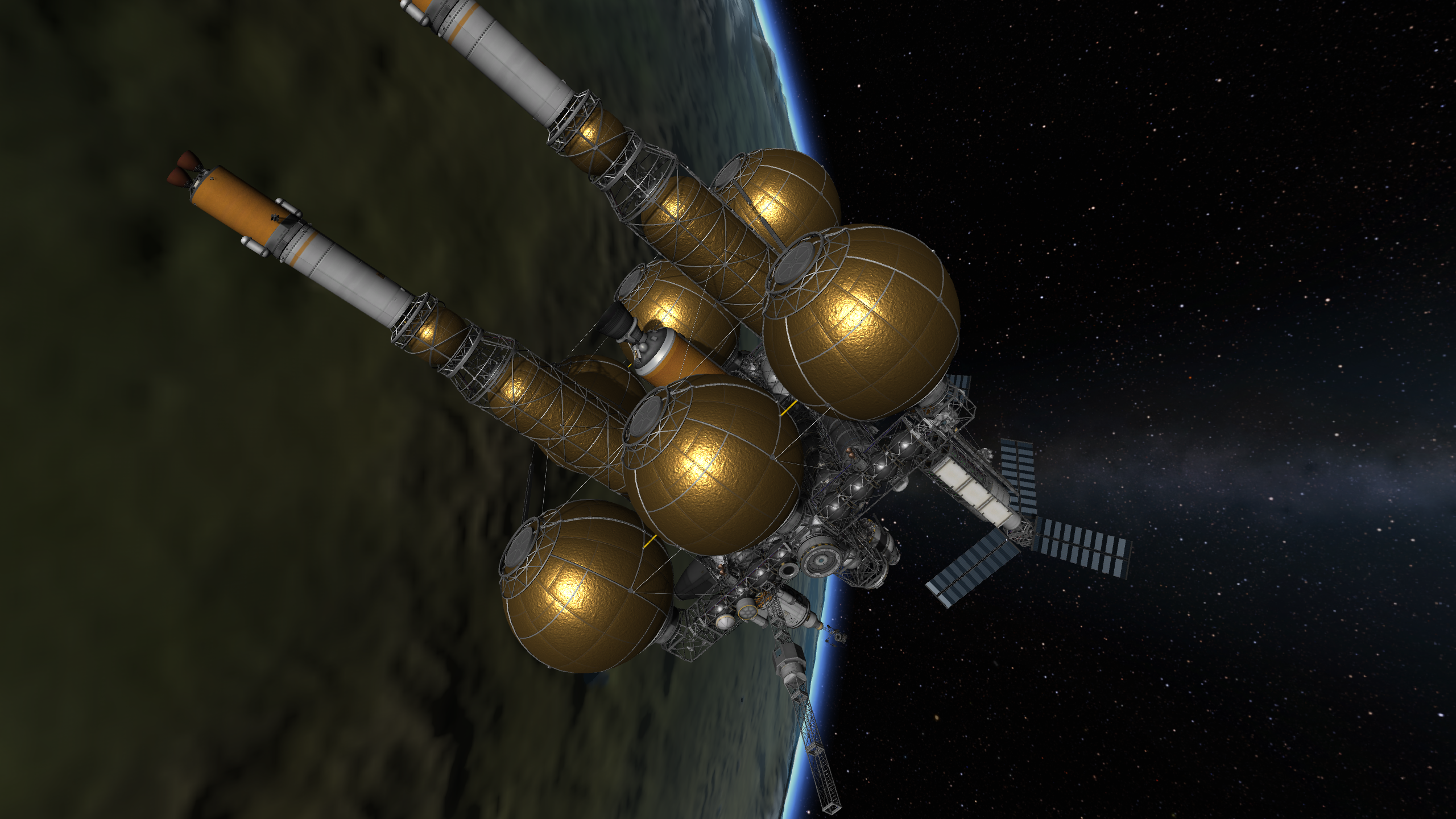 >>788246 >Ух, бля. Не спрашиваю, как ты это подымал на орбиту. Это было эпичное событие. Сам понимаешь - круглые баки для водорода пустые. А откровенно говоря, можно было сделать намного проще - поднять ядро станции а баки пристыковать потом. А вот выровнять конструкцию в редакторе это было что-то с чем-то.