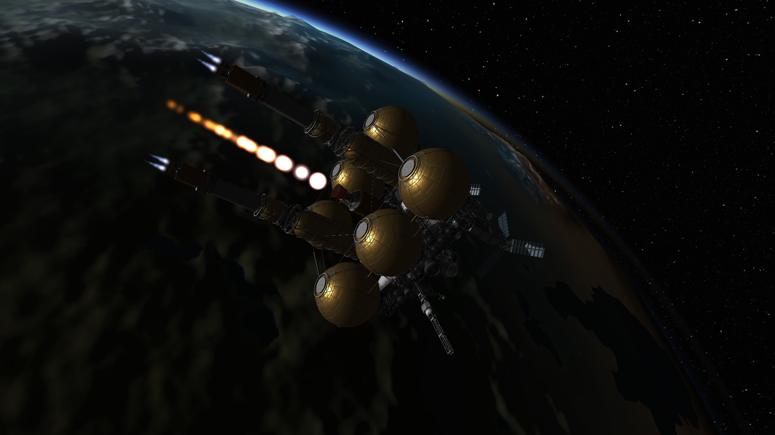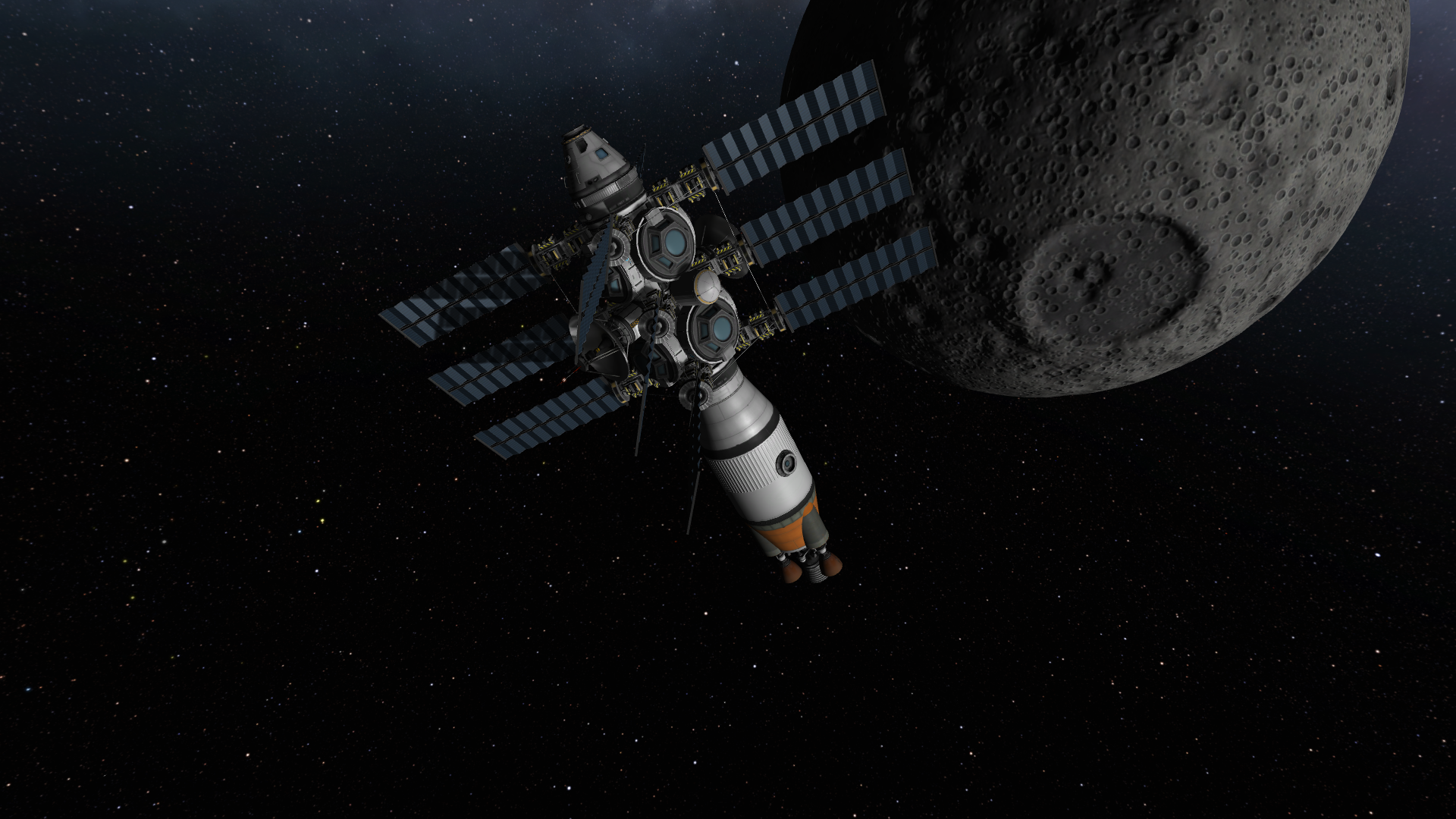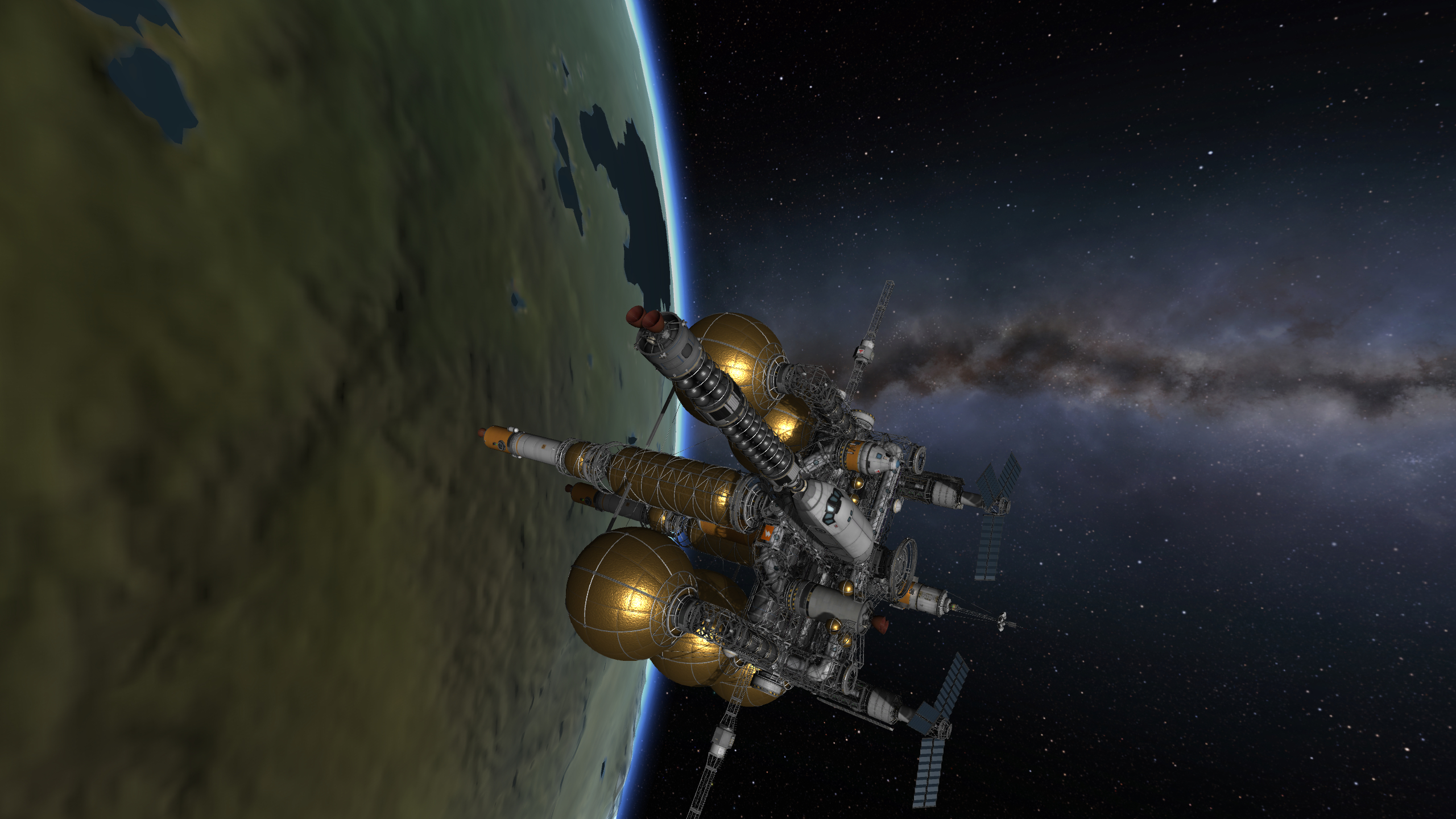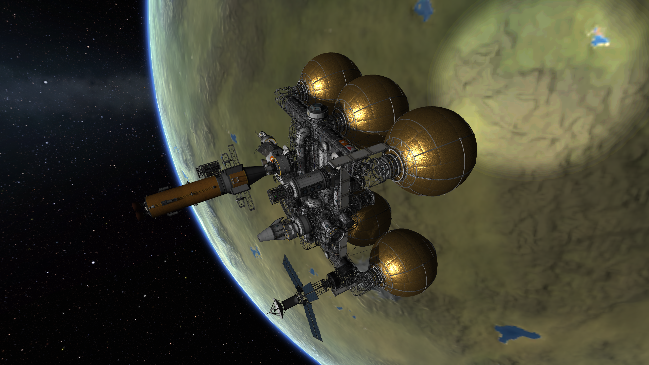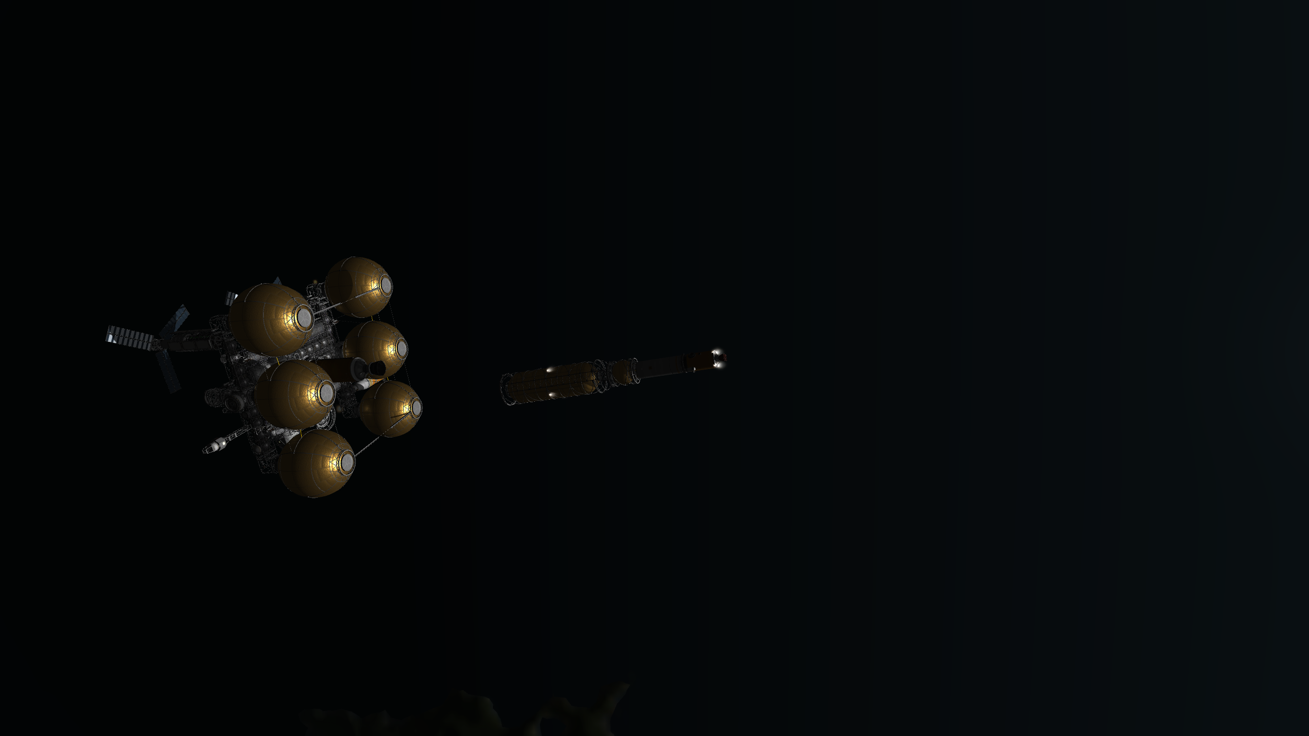 >>788246 >Ух, бля. Не спрашиваю, как ты это подымал на орбиту. Это было эпичное событие. Сам понимаешь - круглые баки для водорода пустые. А откровенно говоря, можно было сделать намного проще - поднять ядро станции а баки пристыковать потом. А вот выровнять конструкцию в редакторе это было что-то с чем-то.
