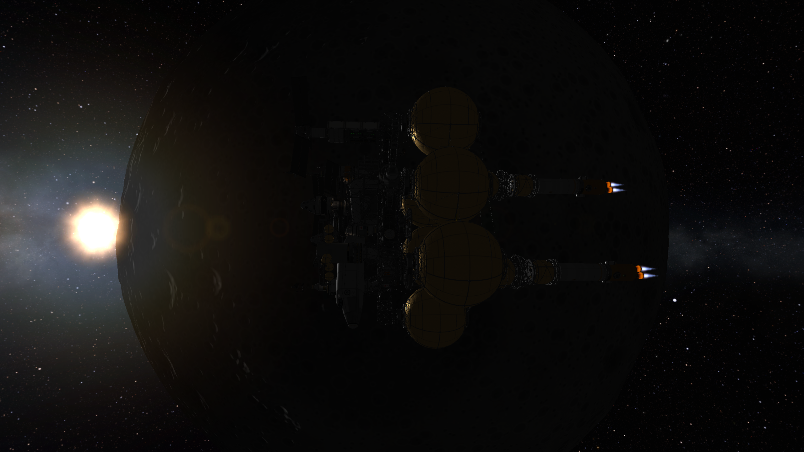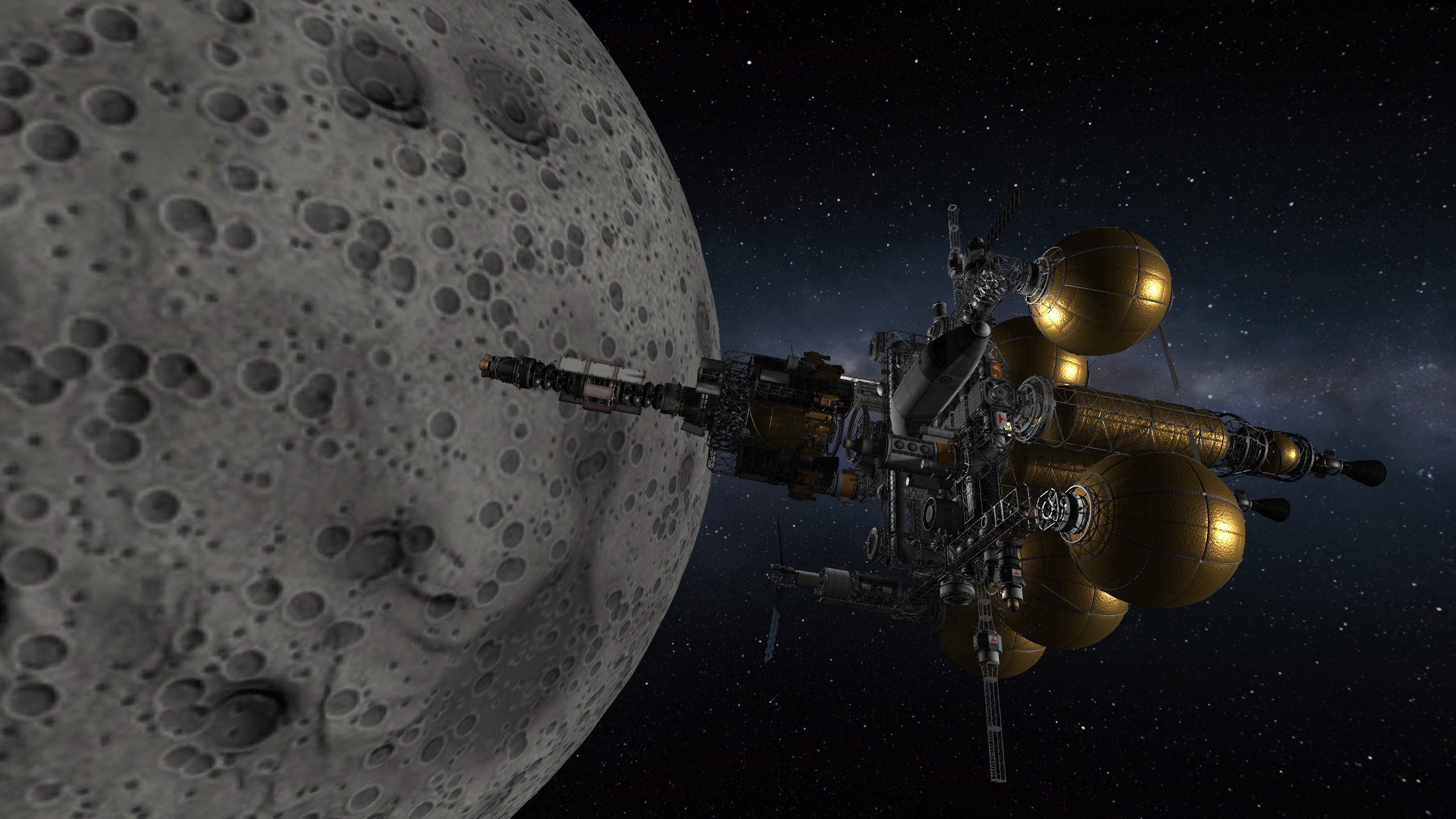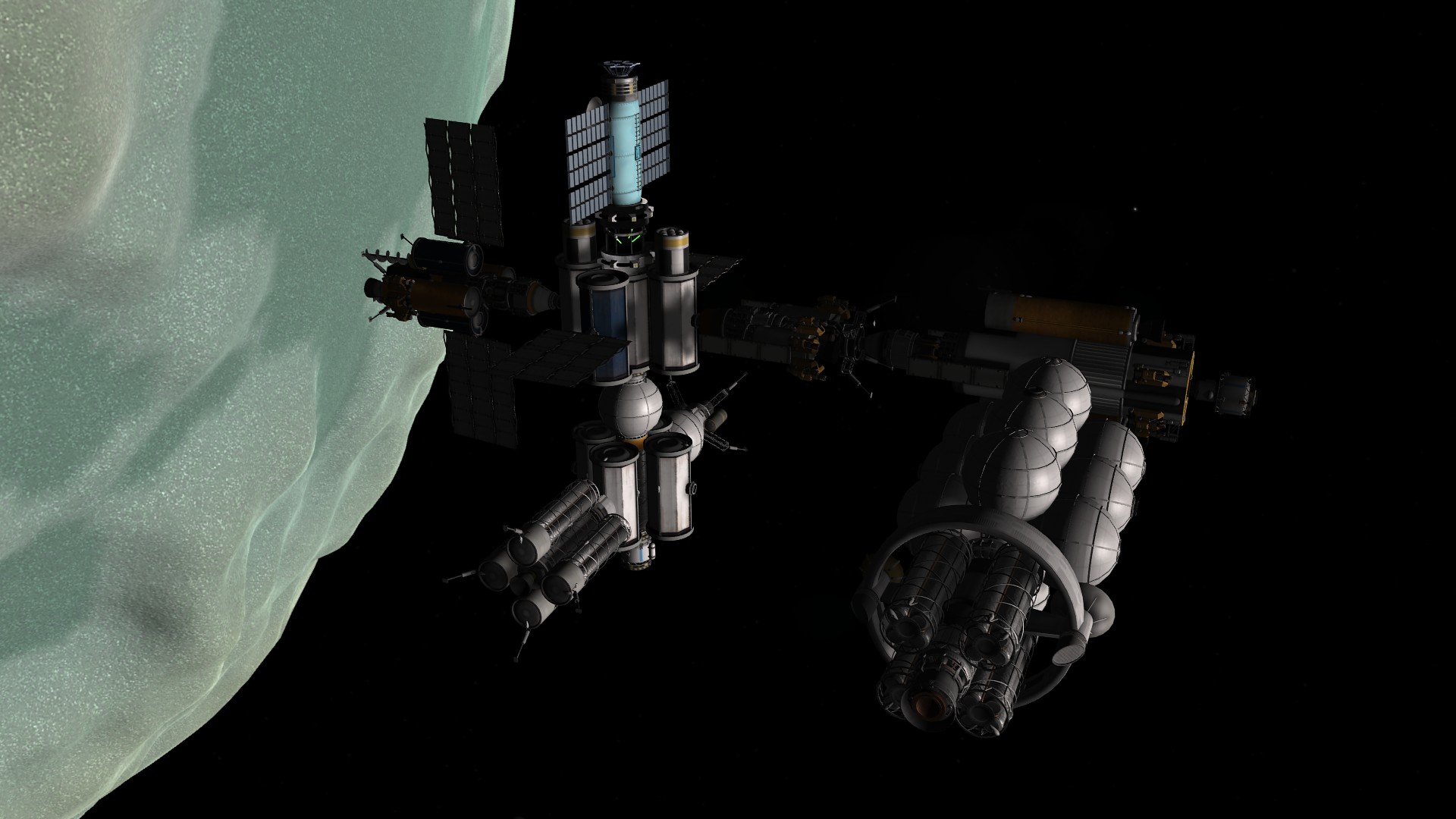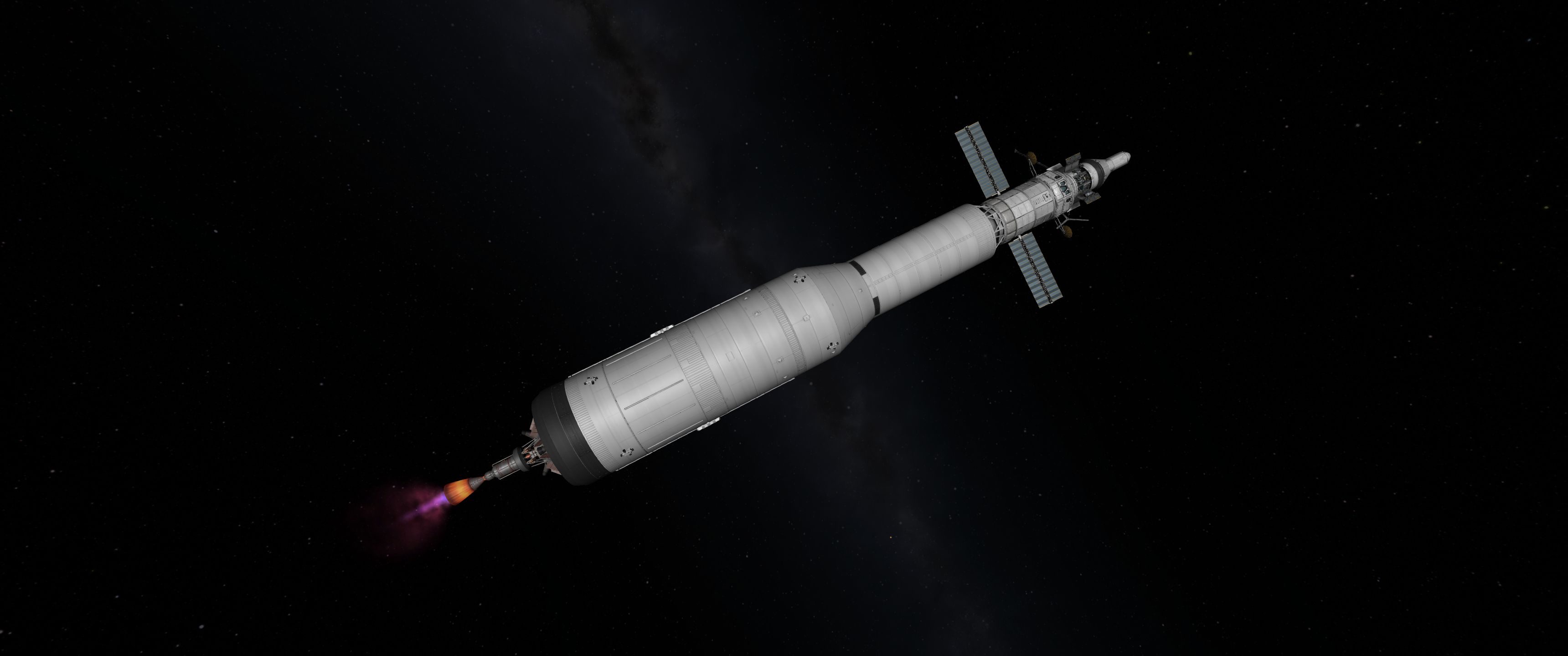 >>788246 >Ух, бля. Не спрашиваю, как ты это подымал на орбиту. Это было эпичное событие. Сам понимаешь - круглые баки для водорода пустые. А откровенно говоря, можно было сделать намного проще - поднять ядро станции а баки пристыковать потом. А вот выровнять конструкцию в редакторе это было что-то с чем-то.
