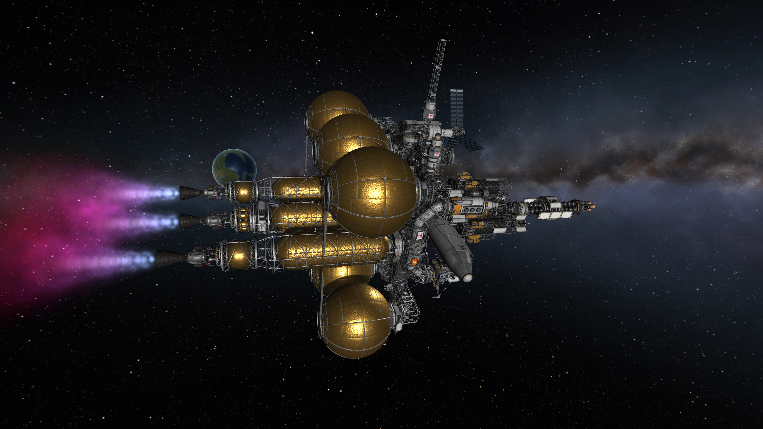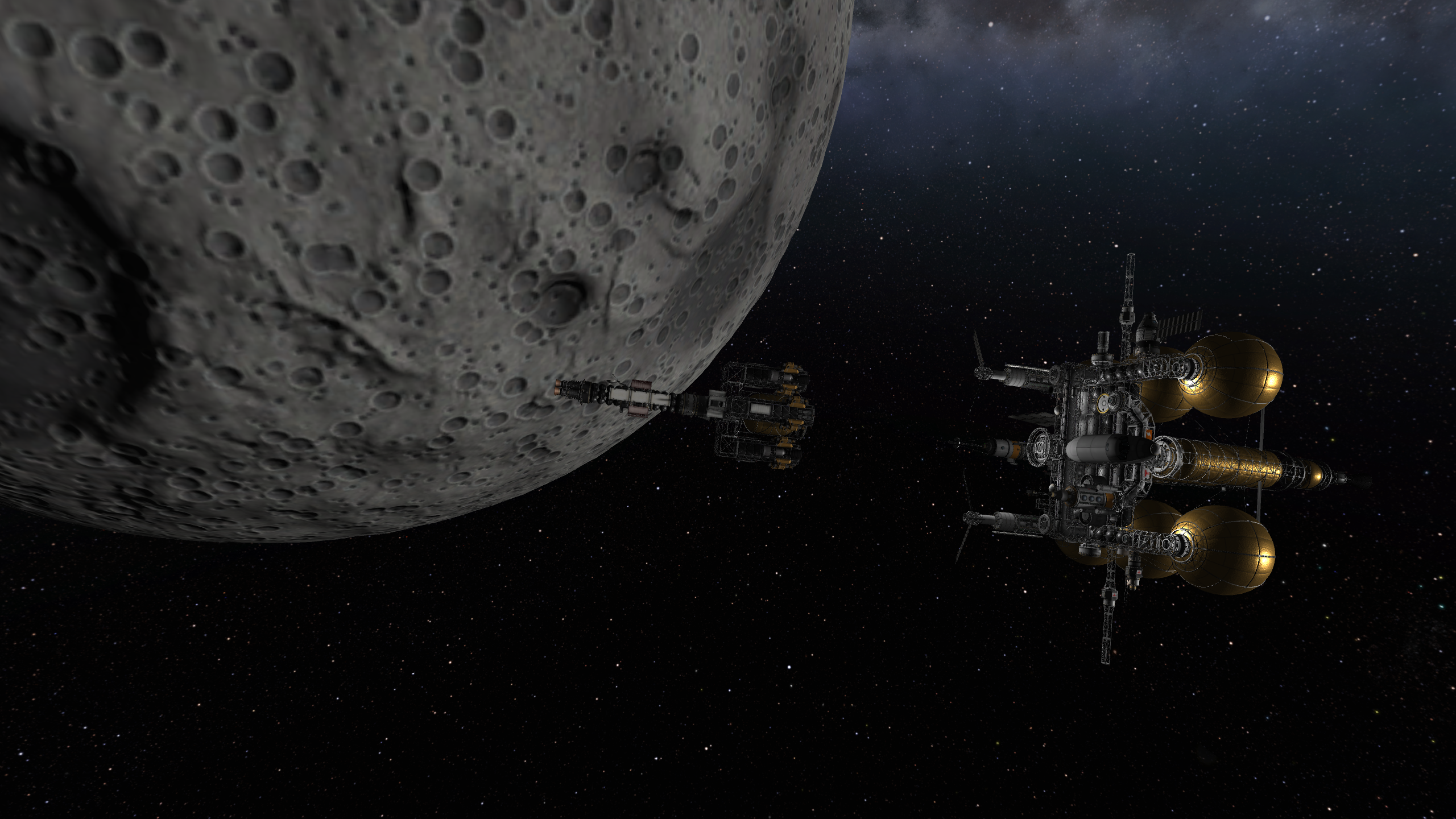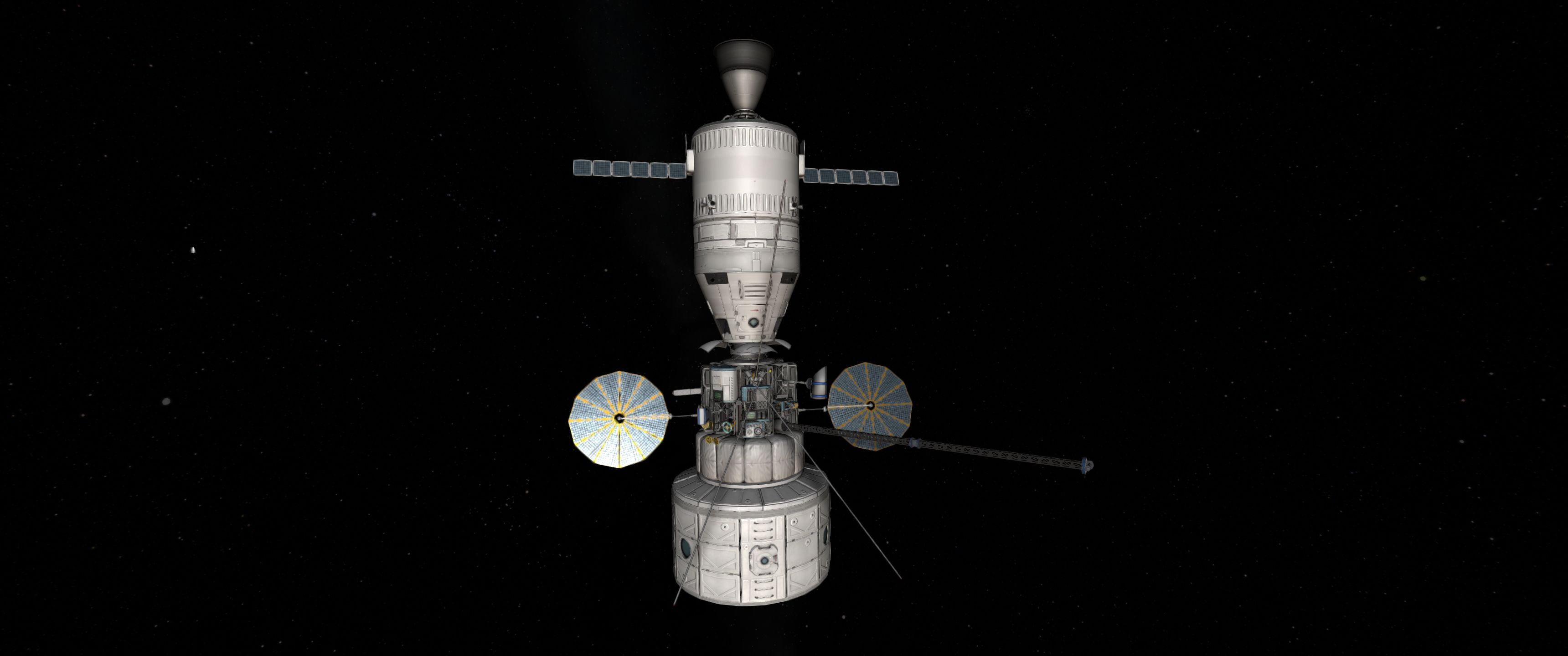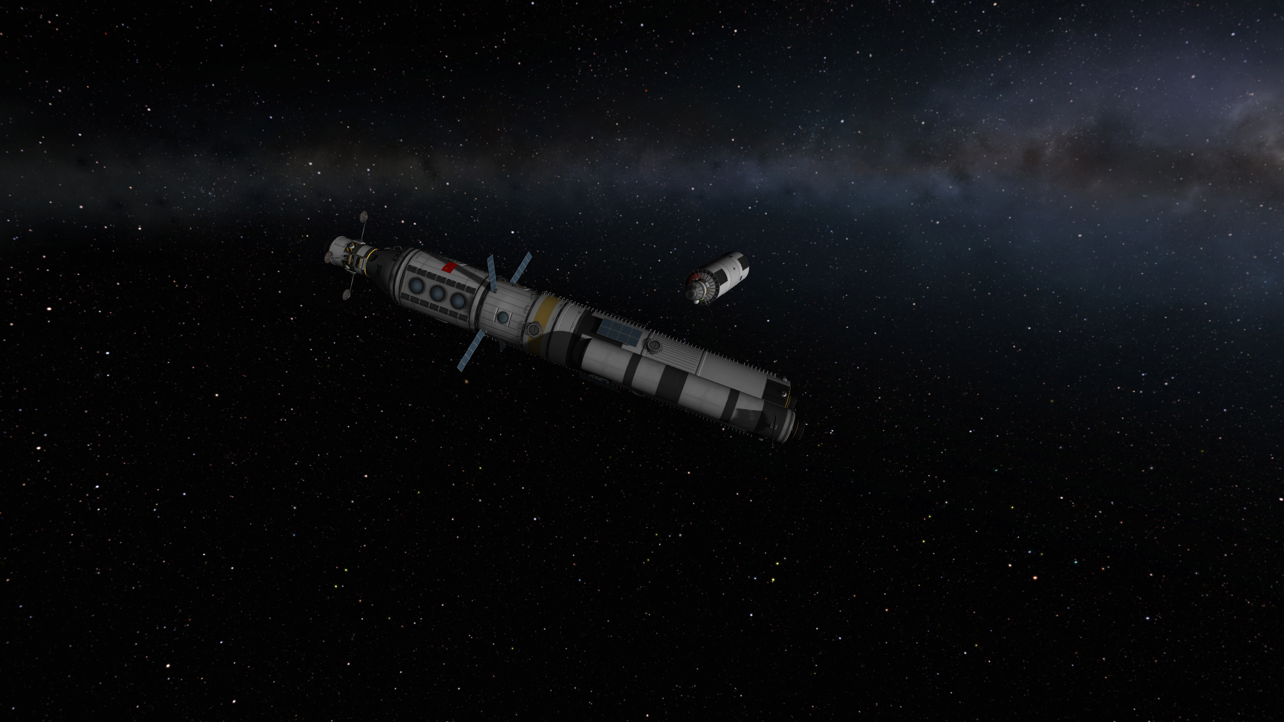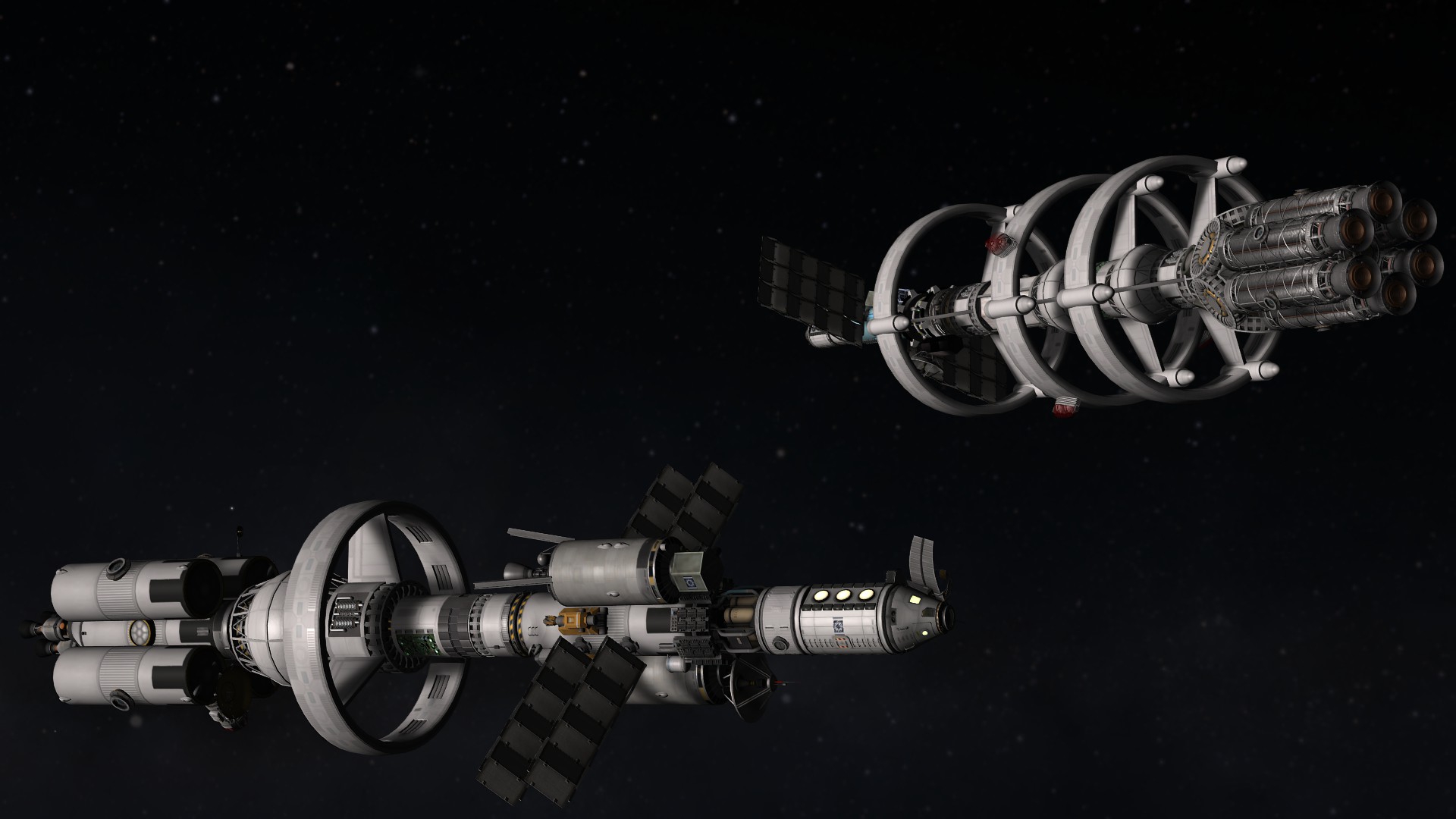 >>788246 >Ух, бля. Не спрашиваю, как ты это подымал на орбиту. Это было эпичное событие. Сам понимаешь - круглые баки для водорода пустые. А откровенно говоря, можно было сделать намного проще - поднять ядро станции а баки пристыковать потом. А вот выровнять конструкцию в редакторе это было что-то с чем-то.