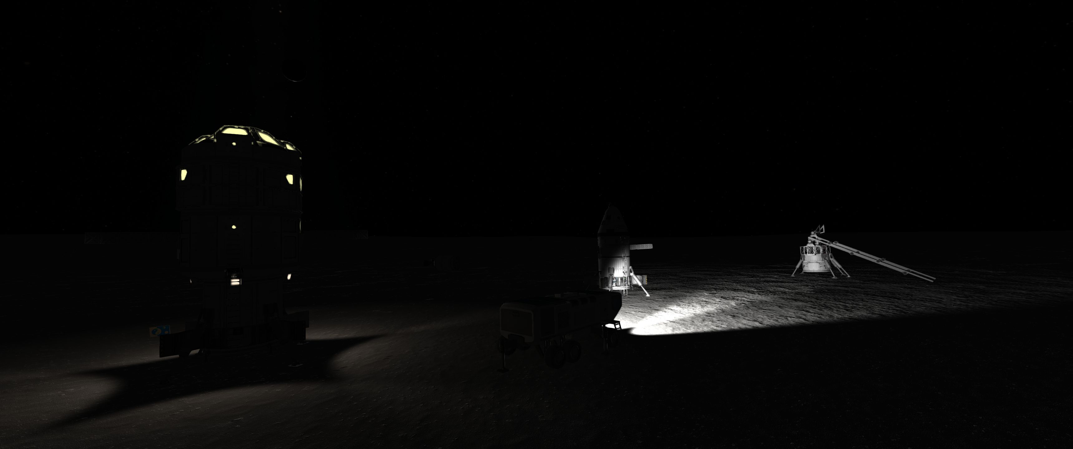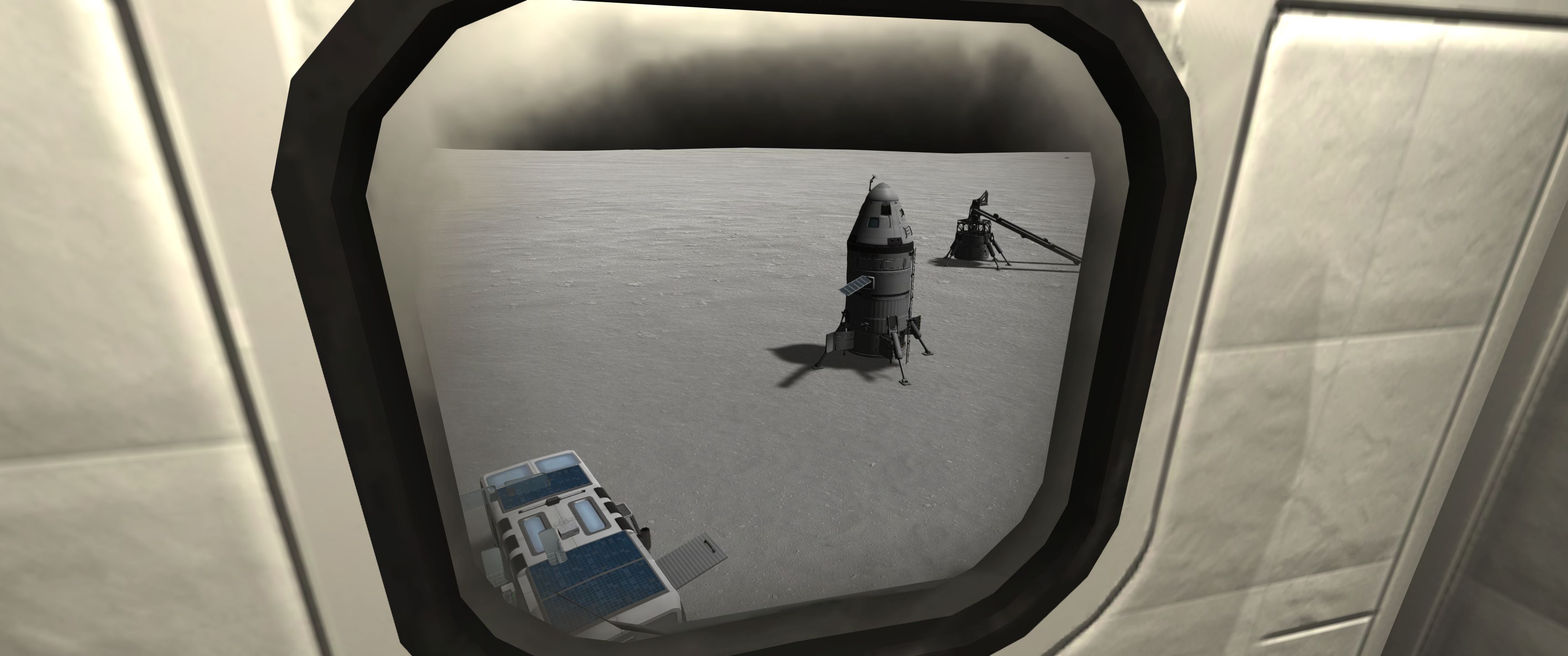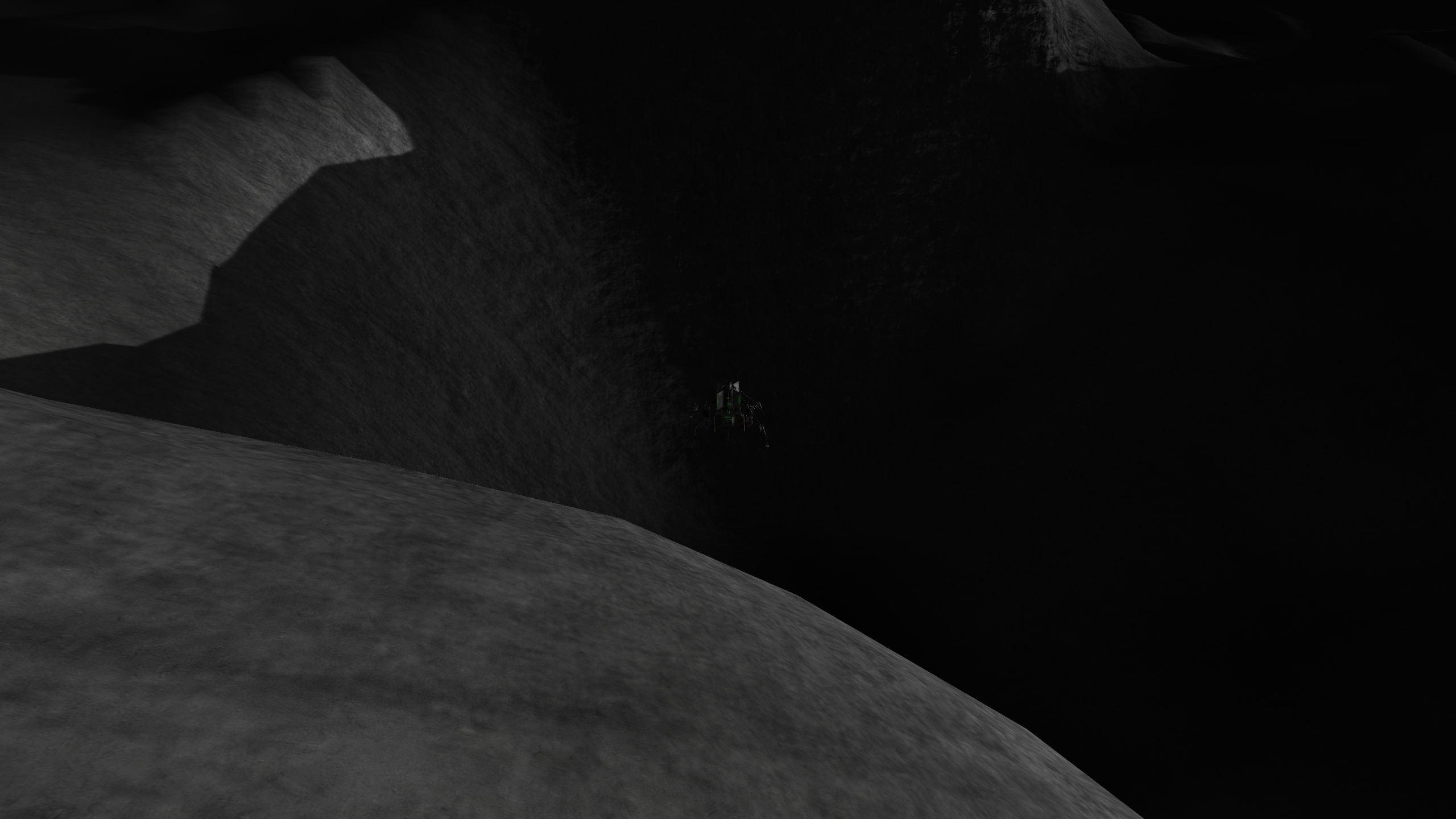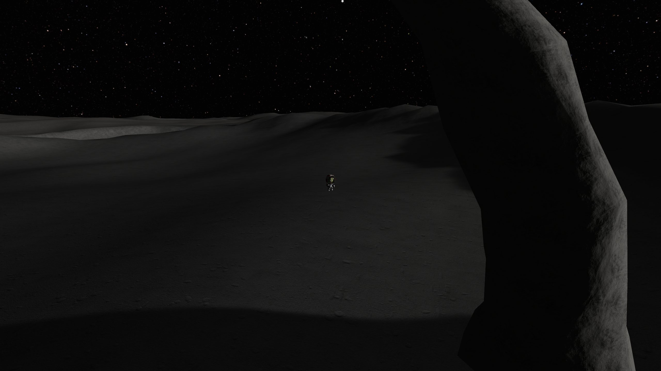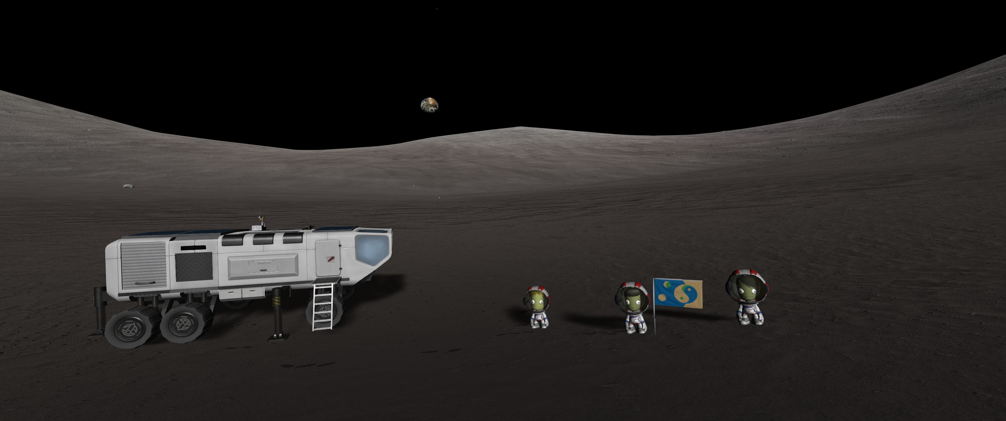 >>789039 Сели мы удачно, на границе трёх биомов. Катаемся, собираем образцы грунту. Находим интересный камушек. Вроде бы метеорит, а больше похож на гальку - продукт водной эрозии. Значит, тут когда-то были окияны? Коляска катит в гору аж 15 км/ч и норовит перевернуться. Ну это я проебался, надо было сиденья не на самом конце ставить. Казалось бы, 10 км это немного, но ощущается очень одиноко. Фото лунного модуля с 3 км прилагается. Хуя нервы у ирл космонавтов были.
