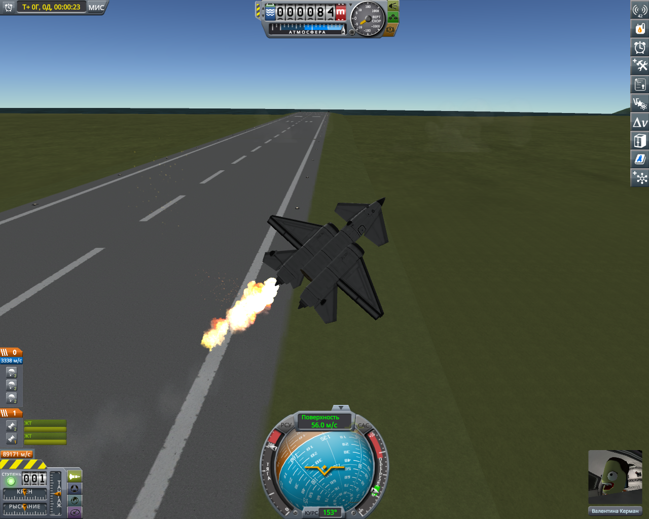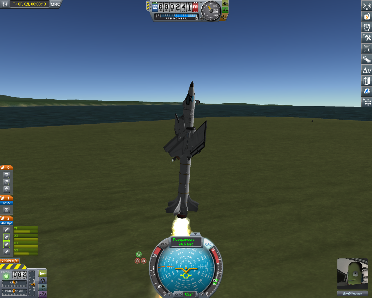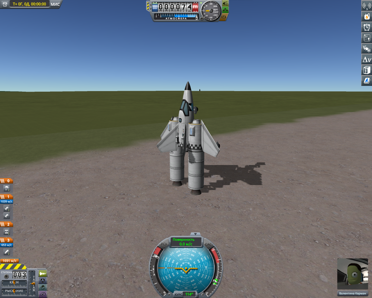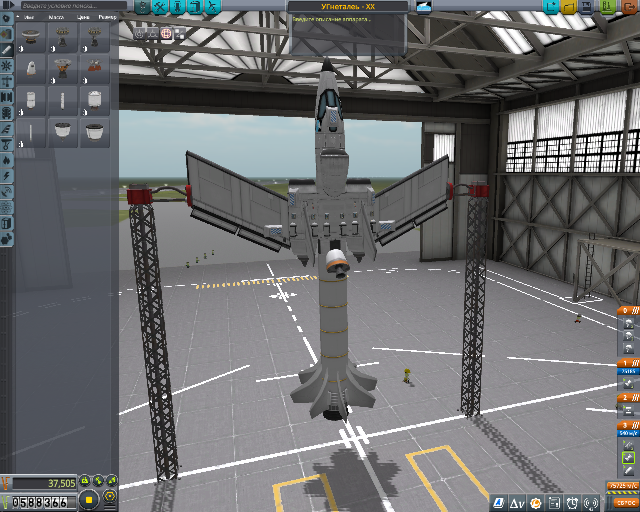 >>816804 Накидал по памяти двухступенчатый крафт. Ебаться пришлось не с дельтой и не с разделением-переключением, а с тем, что евовская гравитация ломает шасси, верхние слои атмосферы больно жгут при входе, а в нижних самолет бесоебит. Вторую ступень лучше заправлять на орбите, гасить 3 км/с об атмосферу мне не понравилось. За ССТО и пропеллерами на ютуб, задроты давно это осилили.