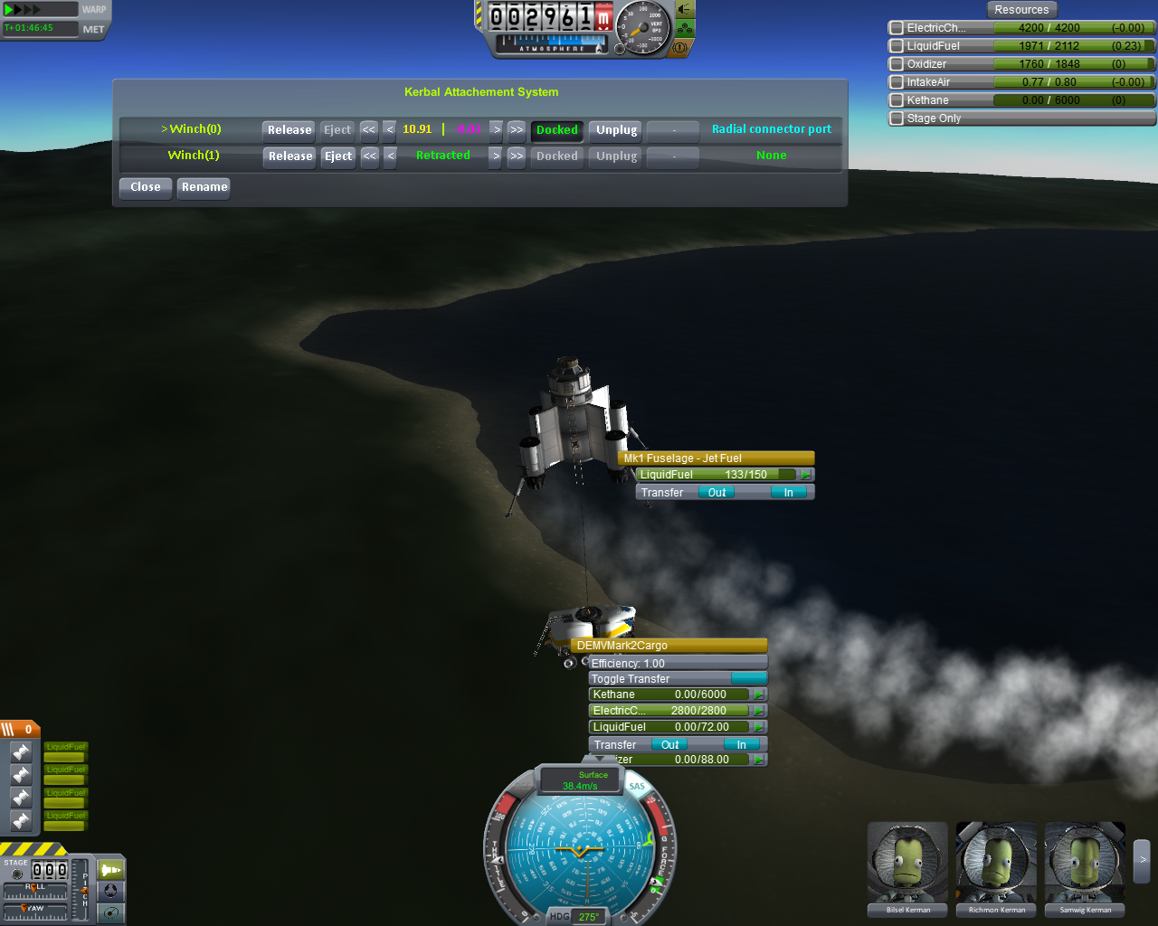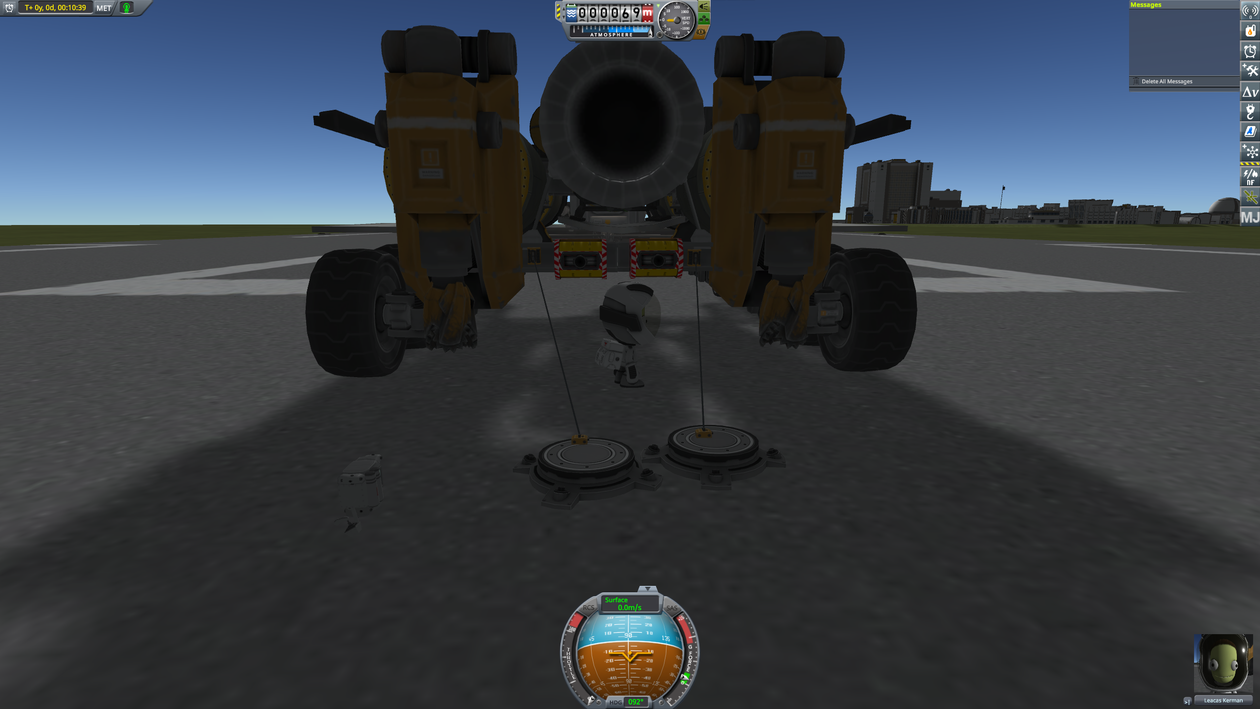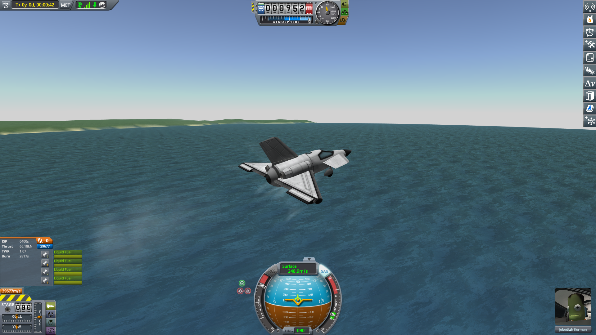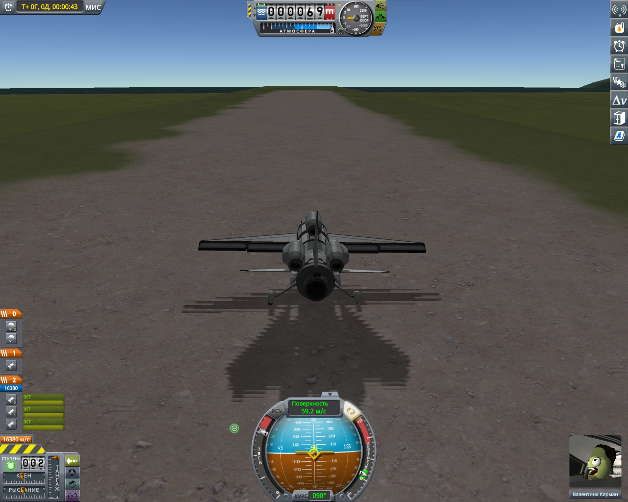 >>816804 Накидал по памяти двухступенчатый крафт. Ебаться пришлось не с дельтой и не с разделением-переключением, а с тем, что евовская гравитация ломает шасси, верхние слои атмосферы больно жгут при входе, а в нижних самолет бесоебит. Вторую ступень лучше заправлять на орбите, гасить 3 км/с об атмосферу мне не понравилось. За ССТО и пропеллерами на ютуб, задроты давно это осилили.
