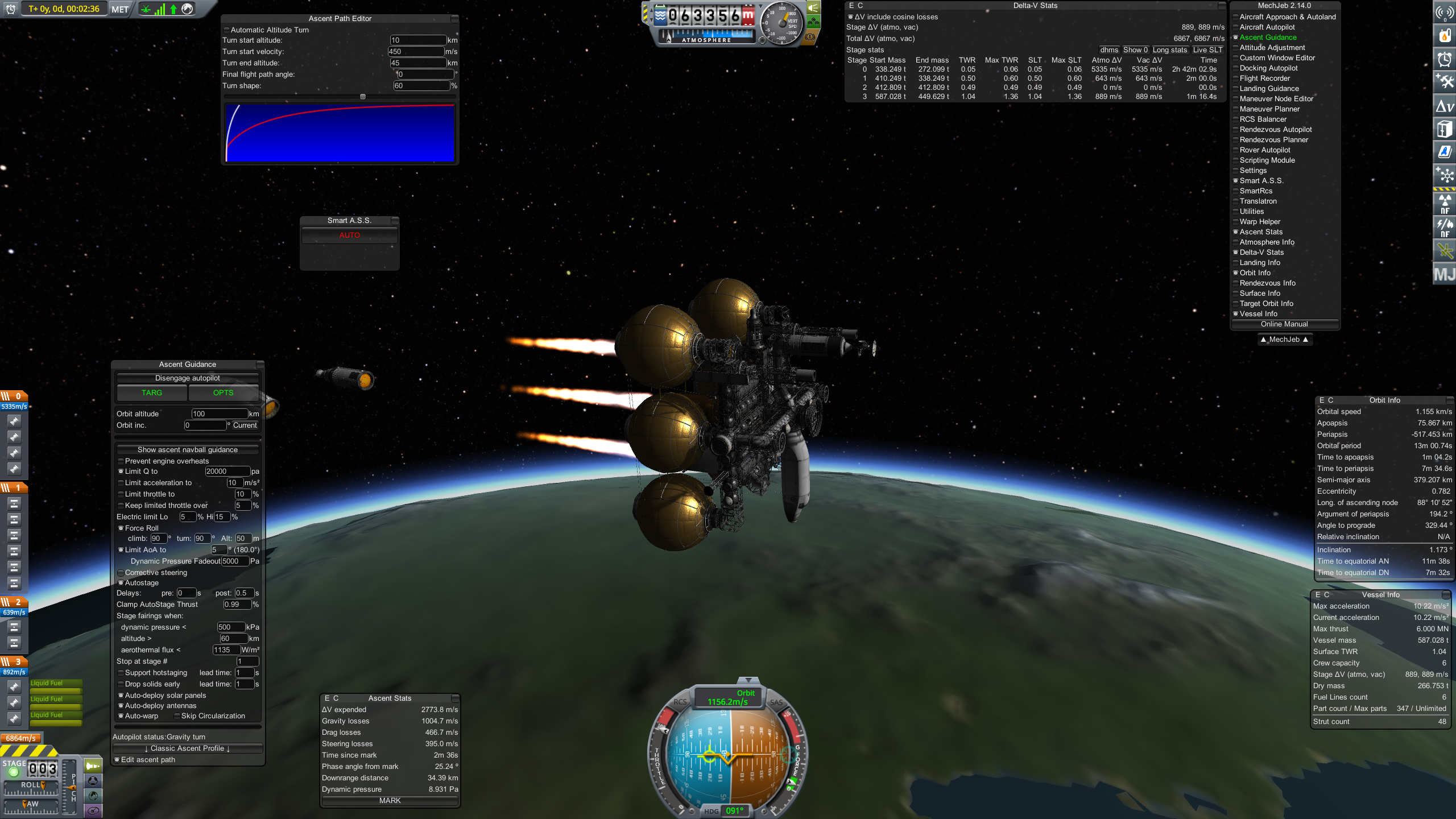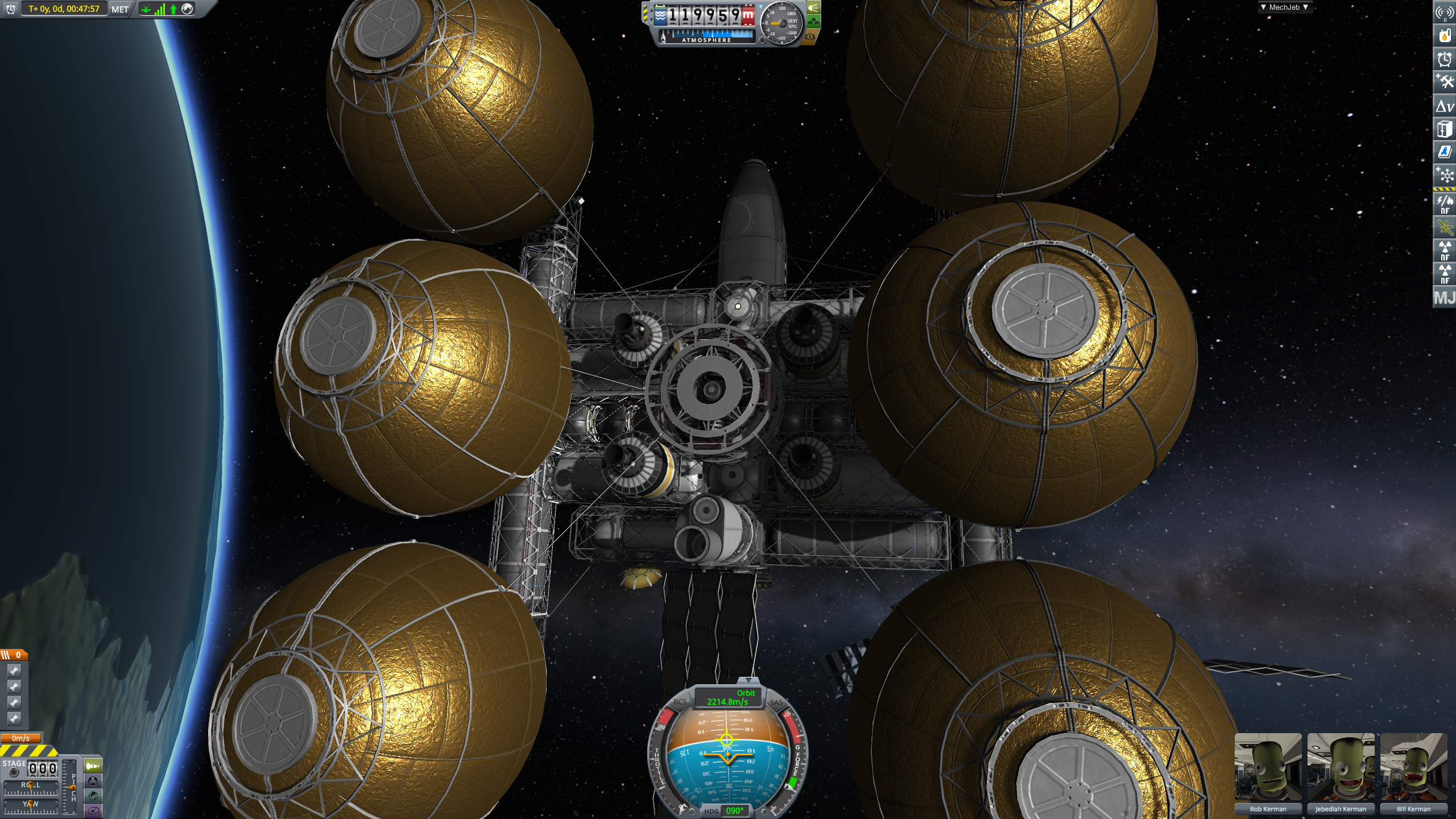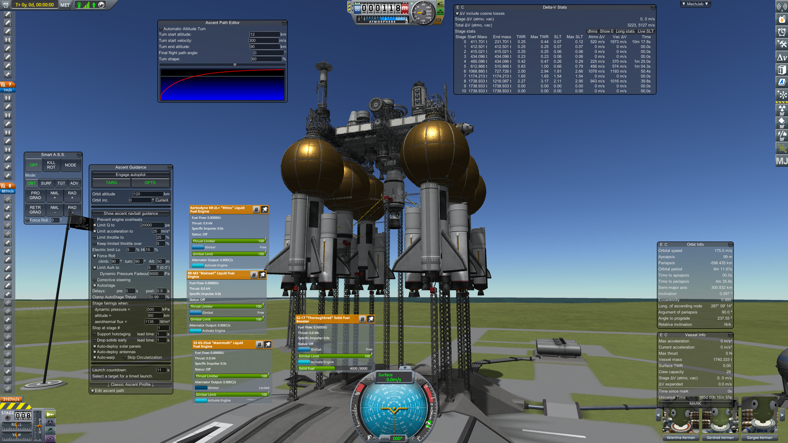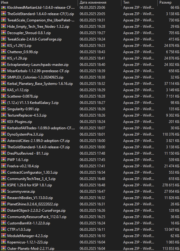 Поверх этого очевидно базовые моды любой сборки на звук, текстуры, Trajectories, Persistent Rotation, миллион других QoL модов + паки реальных двигателей, деталей, систему жизнеобеспечения для смешных зеленых огурцов и прочее.