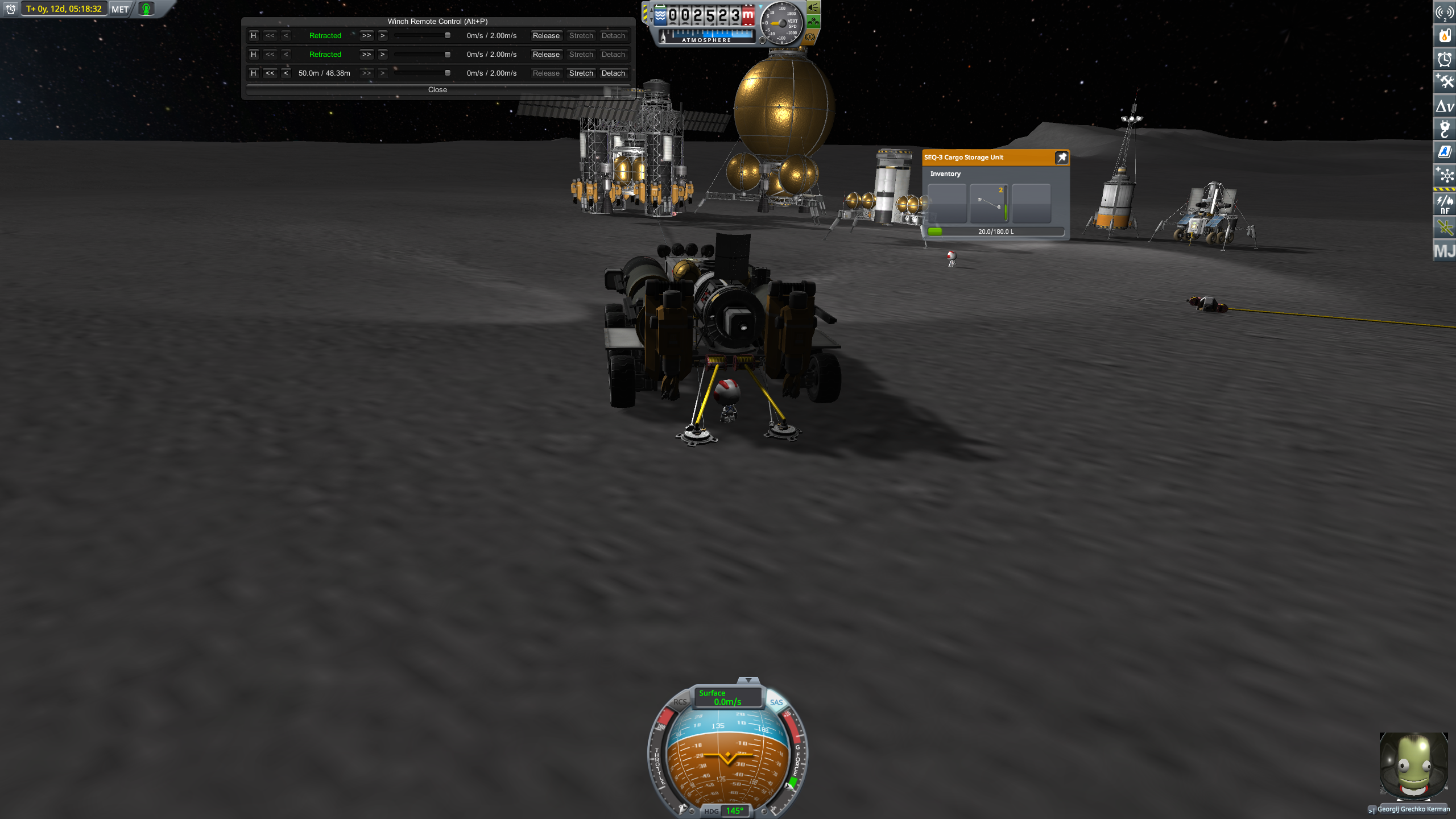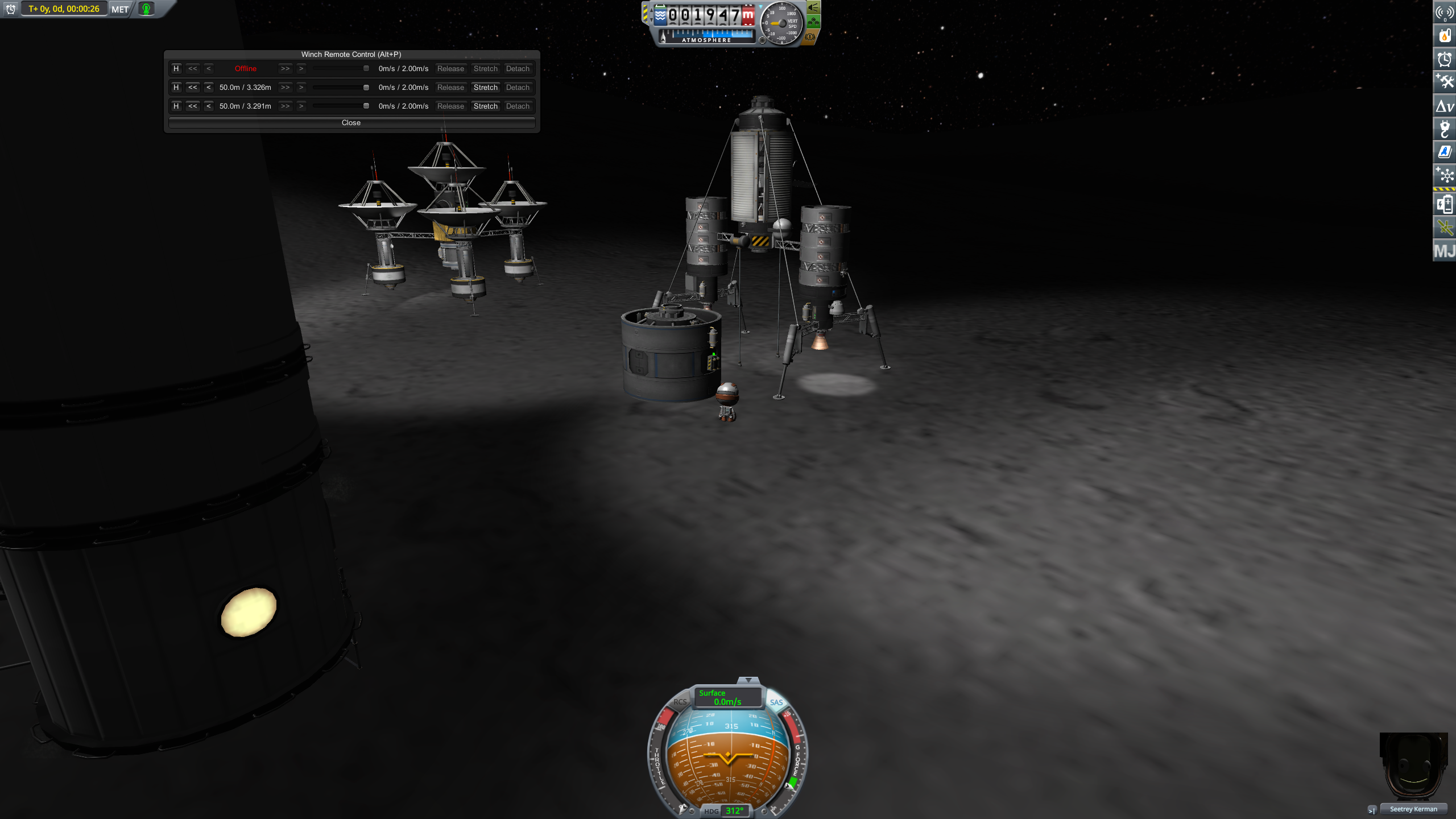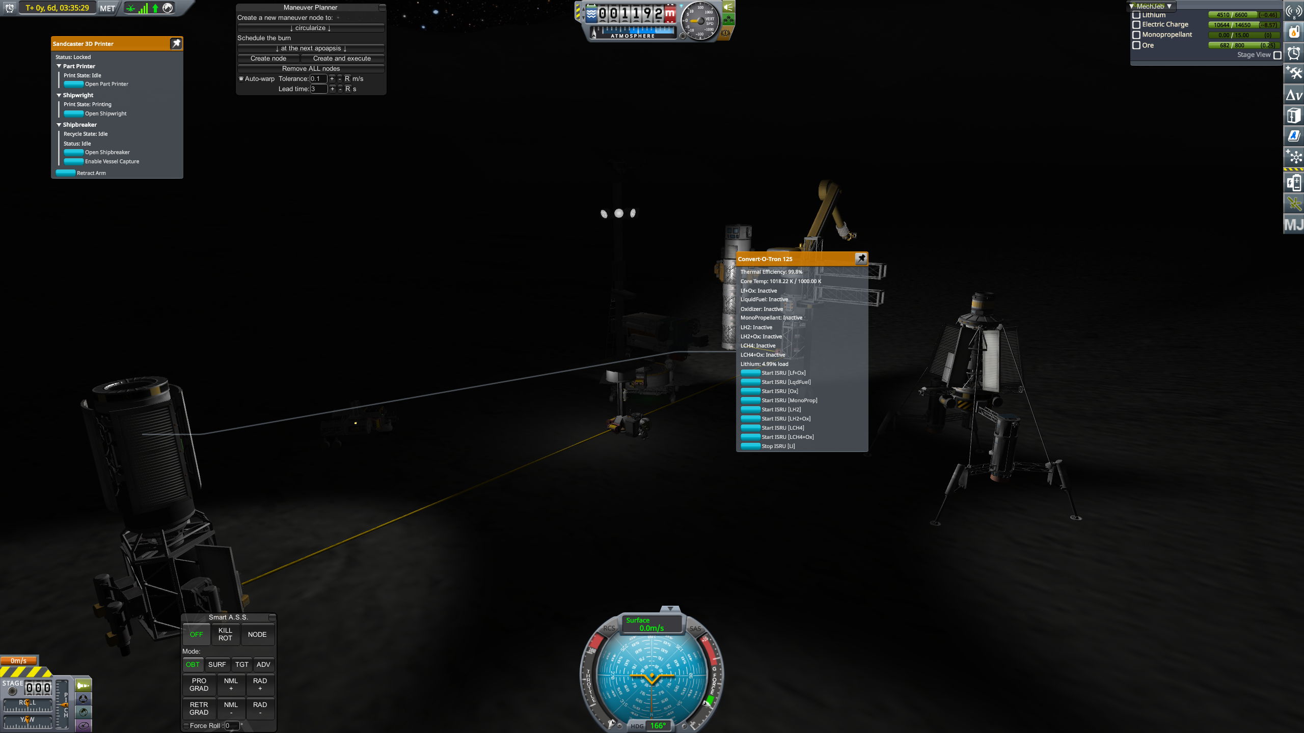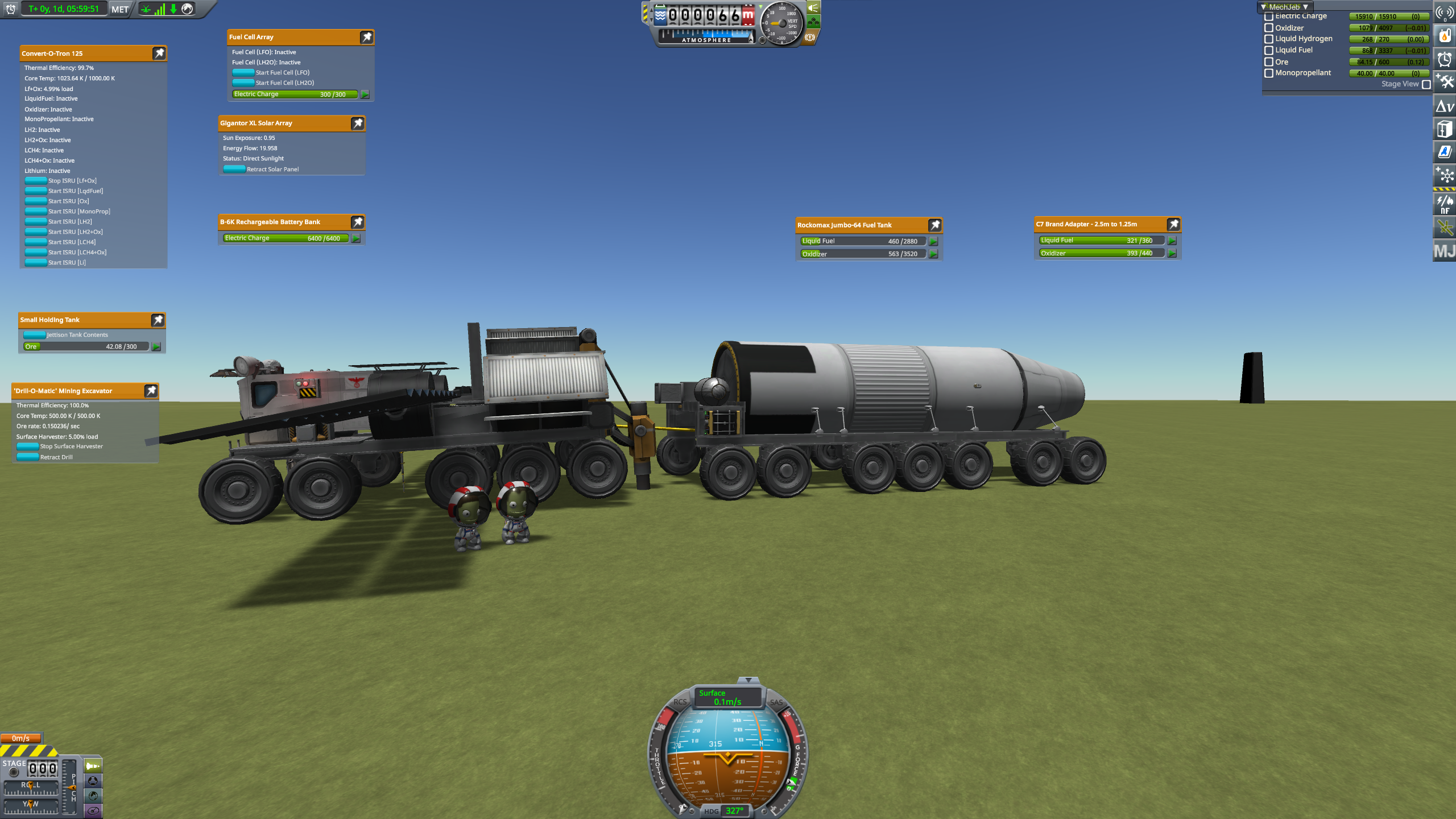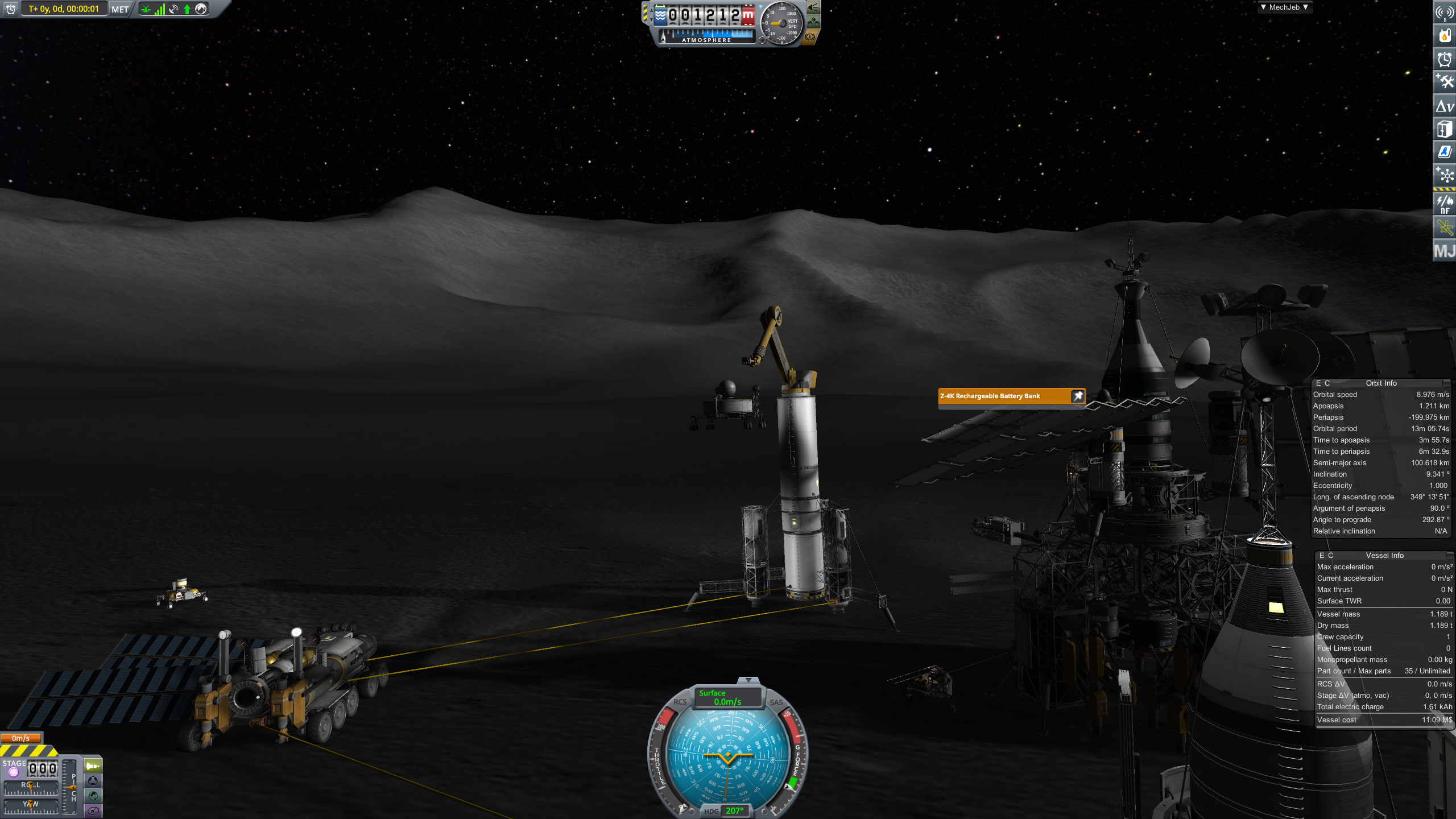 >>787484 Засылаем наконец-то огуречный экипаж. Обживаем базу, садимся в йотаход, едем 68 километров до ближайшей ямы 671 м. Заёбываемся ездить руками, вспоминаем, что есть Bon Voyage. Им же посещаем горушку 6320 м в сотне километров от базы. Светлые полмесяца заканчиваются, батареек на ночной период не хватит, а ни ритэгов, ни реакторов пока нету. Значит, возвращаемся домой со всем собранным.