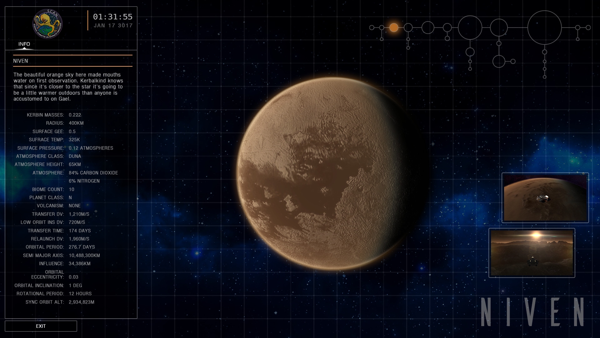 Ффффух, додавил первую полноценную межпланетную экспедицию. Наша цель - планета Нивен. Планета внутренняя, на соседней орбите с родным Гейлом. Плюсы: не сильно большие затраты на разгон. Минусы: противостояния довольно редкие, раз в 8 огуречных лет. Не хочу столько ждать, поэтому долго на Нивене не пробудем.