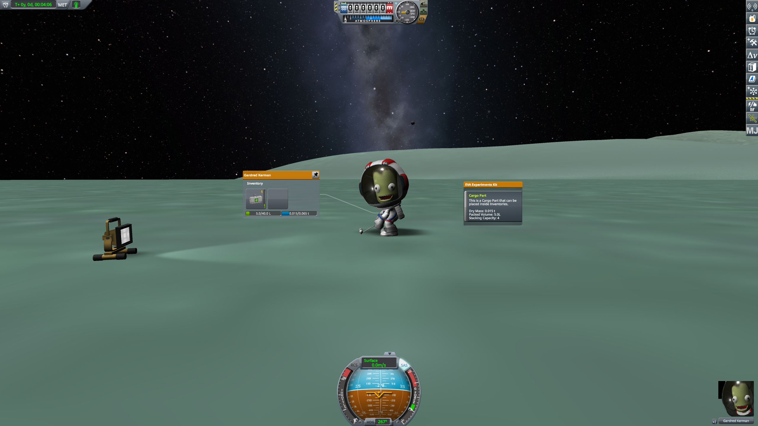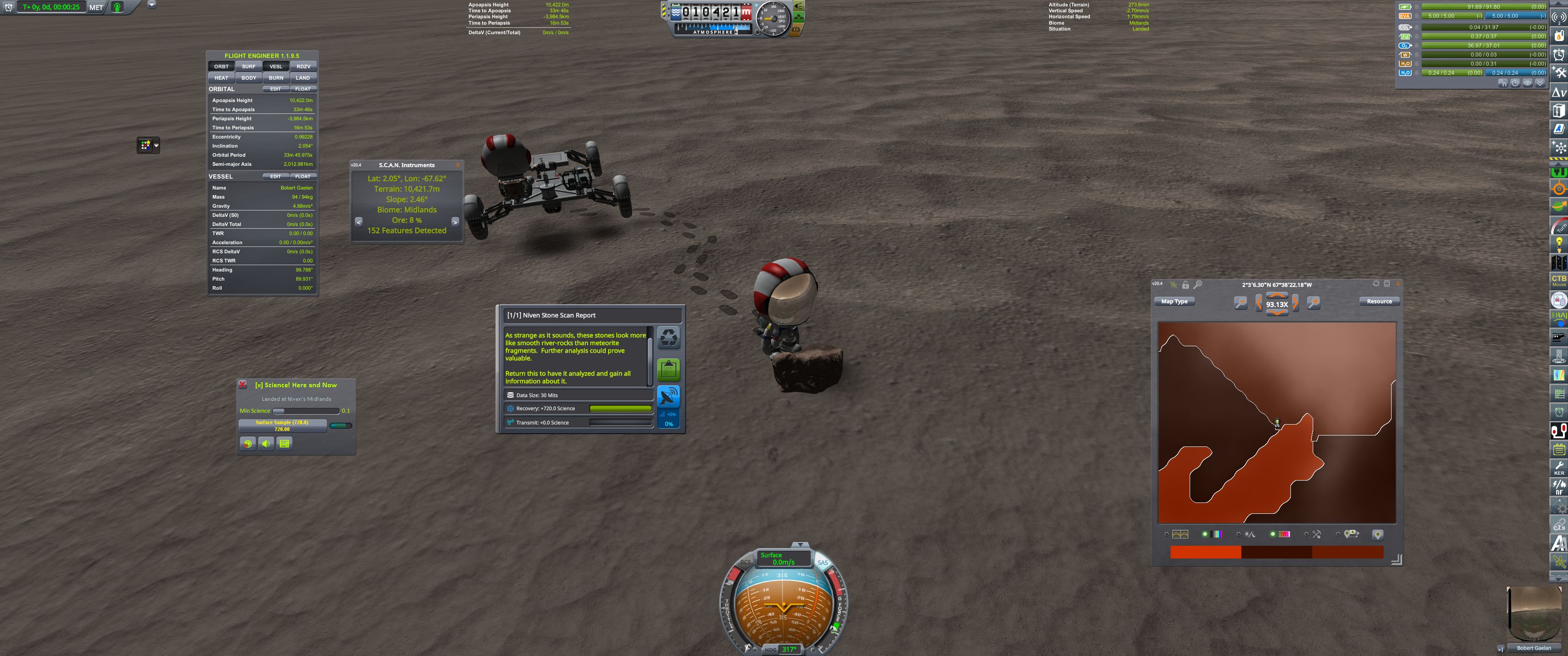 Щупаю науку в кербализме, вроде интересно. Теперь надо не просто летать на муну и обратно и повторно загружать это все в мобильную лабораторию. А зондировать каждое небесное тело и каждый биом ради получения драгоценной науки. На минмус пока боюсь кербанавтами летать, туда назад 2 недели, это многовато. Скоро открою нужные технологии буду строить орбитальную станцию и тестировать системы жизнеобеспечения.