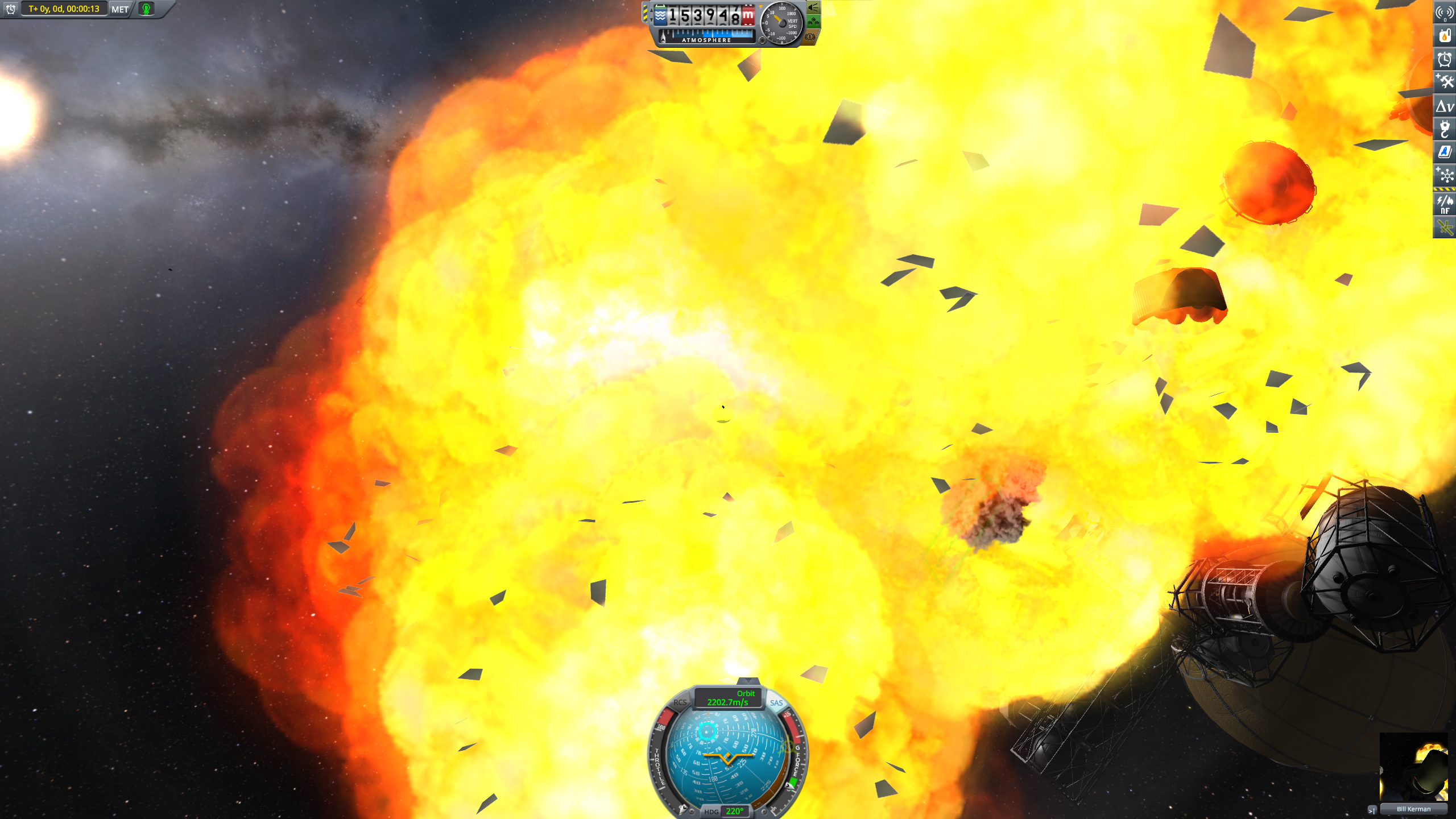 >>816792 Когда RCS в ангаре ставишь, проверяй где центр тяжести, и растанавливй относительно него так, чтобы тяга была более-менее равномерной. Или гиродины пожирнее ставь.
