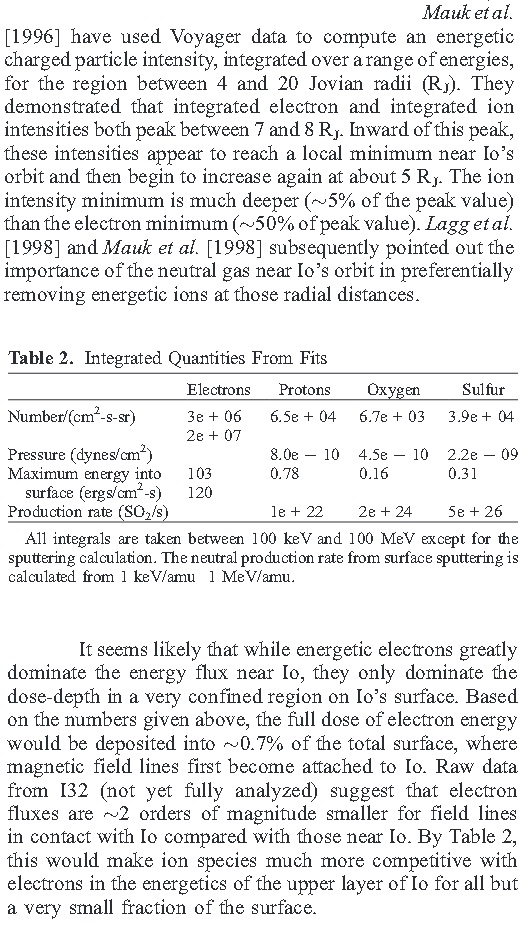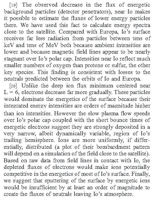 >>537260 Правда в этом всё-таки есть, т.к. в таблице>>537262 доза для Ио указана только от ионной составляющей. Что в десятки раз меньше дозы от электронов. И всё же. Почти все электроны выпадают на поверхность на крохотном пятачке где-то на "подветренной" стороне Ио. На остальной поверхности, определять дозу будут именно ионы.