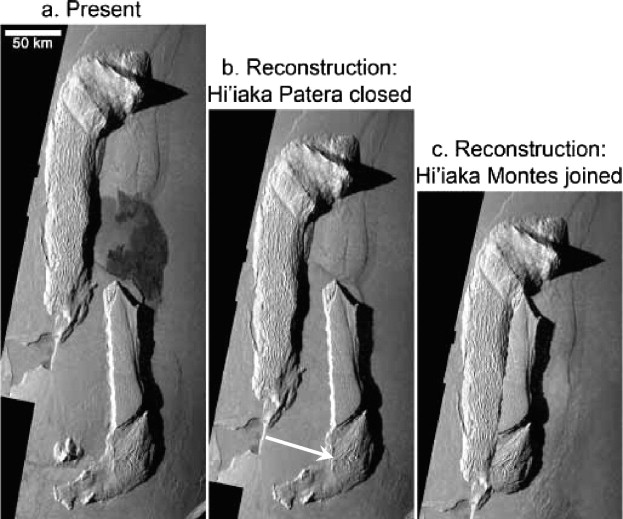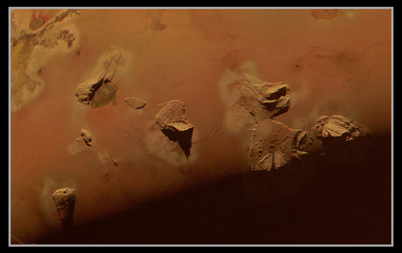 хотя может и горы на Ио быстро двигаются и могут исчезнуть со временем. На Земле горы растут медленно, а на Ио всё аномальное, возможно там горы растут или тонут быстро, если бы измерить высоту этих гор со временем, то можно было бы замерить скорость изменения их высоты, эластичность коры и энергию, которая там тратится на такие вот процессы. Так что если мы составим сейчас карту Ио, то возможно она будет абсолютно неактуальна через пару тысяч лет.