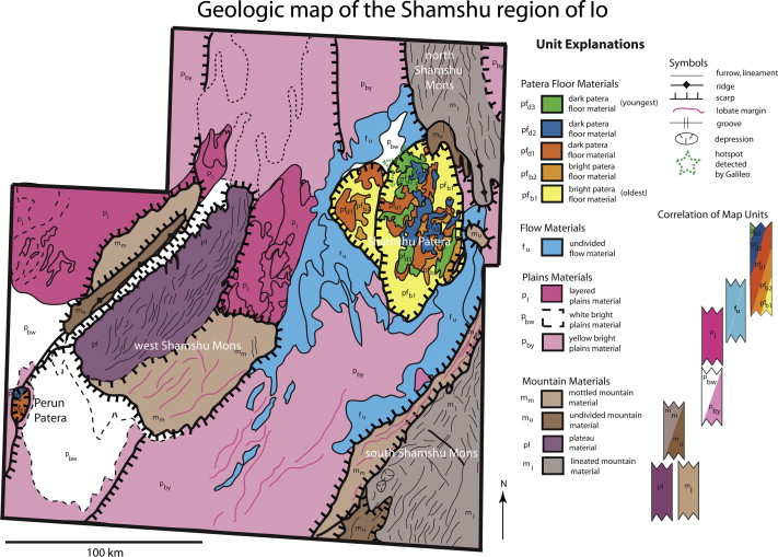 Отсюда https://pubs.usgs.gov/sim/3168/ (справа, 16,9 МБ) можете скачать подробнейшую карту геологии. Гора Монджибелло, например, внезапно просто гора, тектонического происхождения И без прилежащей вулканической кальдеры (хотя на Ио это почти закон). К тому же удачно (по моим подсчётам) расположена: в координатах с минимальным выпадением частиц на поверхность. В горе также есть глубокая долина, и вот там радиации (внешней) не должно быть вовсе. Вот оно и место для нормальной космической колонии, на твёрдой земле, почти как Марс. Что скажете, аноны, устроят там в будущем первую космическую тюрьму-поселение?