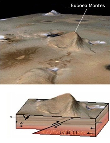 >>537354 UP. Пикрил 1, симуляция треска коры. Розовая полоса внизу - астеносфера, всё что выше - кора. Напряжения на кору максимальны в самом низу. Кора трещит, трещина ползёт вверх. В итоге кусок коры наползает на соседа, приподнимается и образует гору (пикрил 2). На пути к поверхности, от основной трещины ответвляются побочные, через них вытекает лава и образует патеру.
