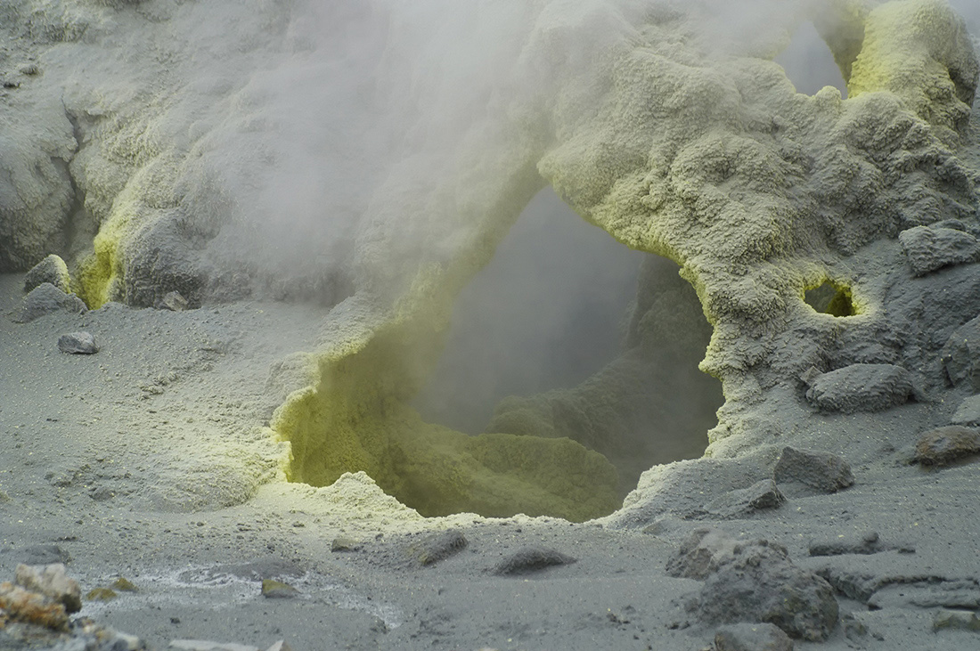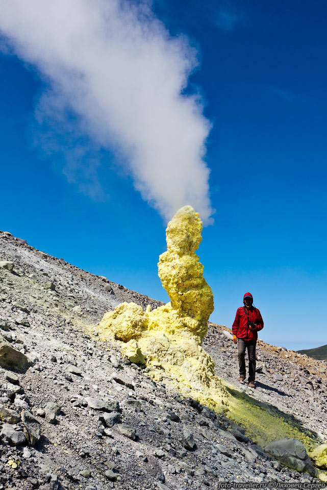 Хотя там наверное есть места где сера тонким слоем снега лежит, как болото может быть, такая пористая пористая, потому что из под земли газ выходит. Вот в такую серу залезешь и не вылезешь.