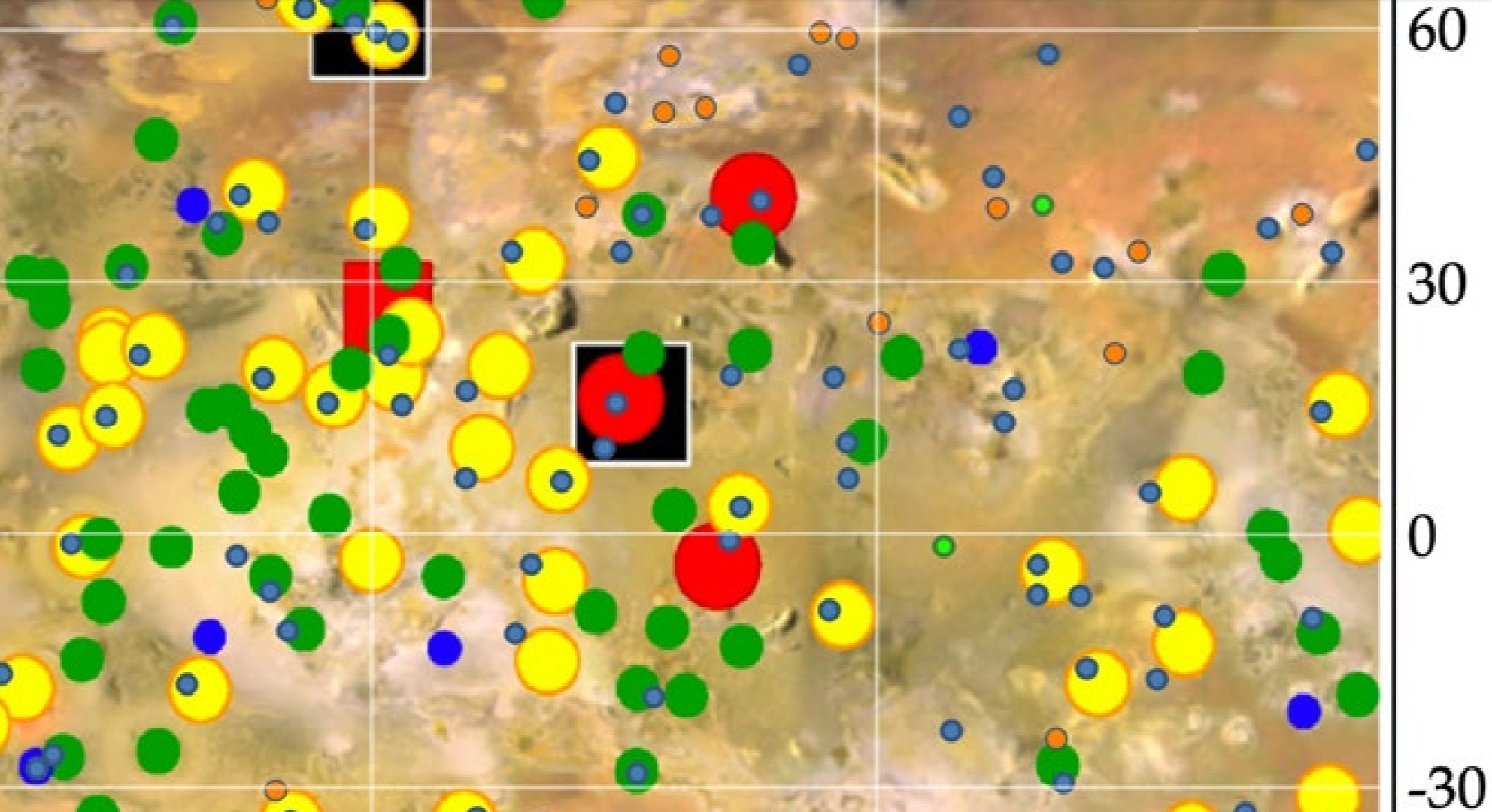 Пикрелейтед это не картина в стиле экспрессионизма, и не коллекция жвачек снизу школьной парты, а геологическая карта Ио. Ученым очень хочется увидеть Ио в лучшем разрешении и составить подробные карты всех этих вулканов и их выбросов. А потом снова перерисовать эти карты через пару лет по новой после новых извержений.