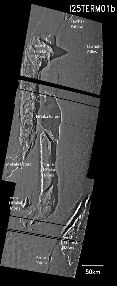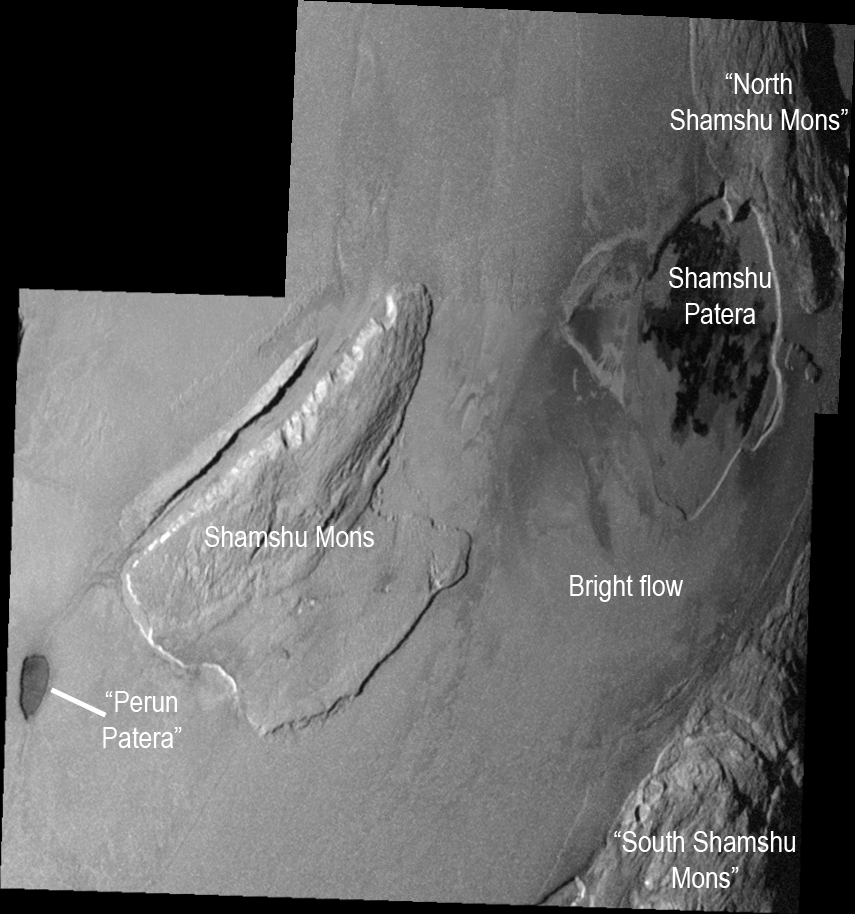 Северный Шамшу интересен больше всего. Во-первых, хоть он и из цельного куска коры, но содержит узкую долину, которая ориентирована как раз так, чтобы максимально защитить от потоков частиц. К тому же неподалёку есть небольшая и неактивная патера Перун. Лучше места для постройки гидротермальной станции на Ио и не найдёшь! А прочный и монолитный массив горы даёт некоторую надежду на сейсмостойкость базы.