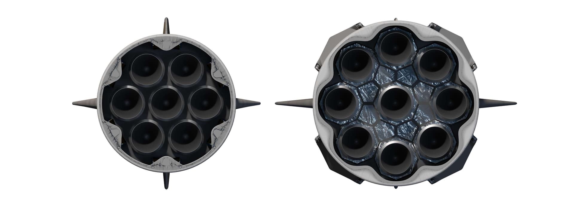 Тяга семи двигателей BE-4 первой ступени увеличена с 17 219 кН до 19 928 кН (суммарно) Тяга двух двигателей BE-3U второй ступени увеличена с 1423 кН до 1779 кН (суммарно) Многоразовые створки головного обтекателя (с возвращением и повторным использованием) Удешевлённая конструкция топливных баков Усовершенствованная многоразовая теплозащита (Enhanced Re-usable TPS)