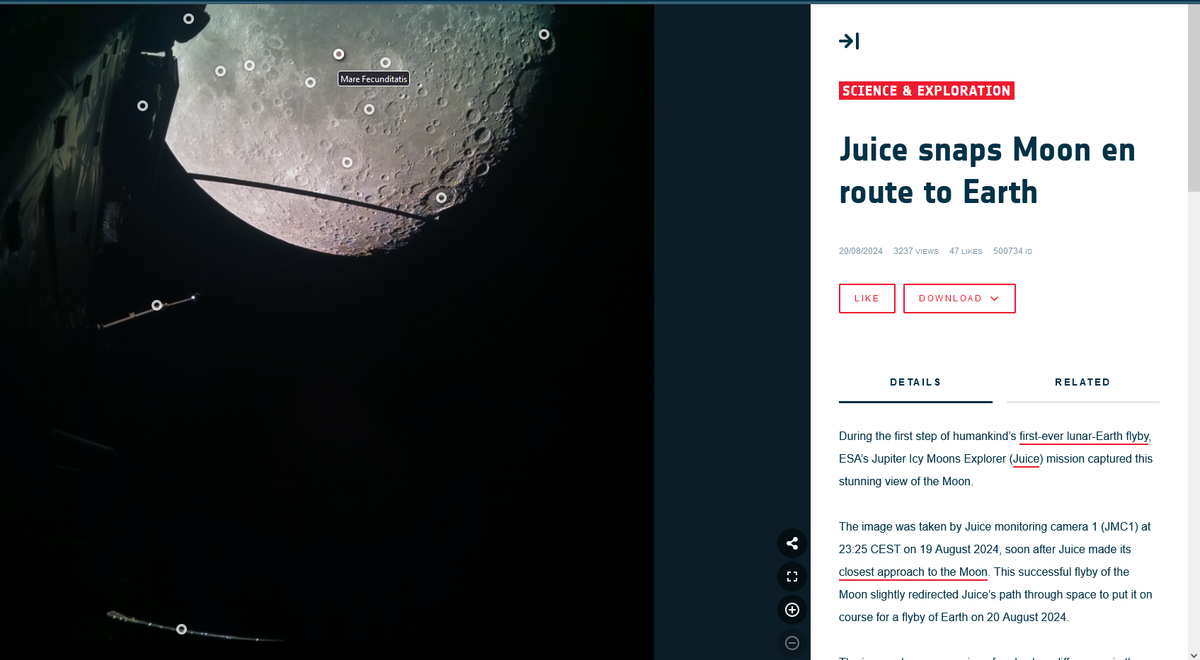 Фоточки с пролёта. На сайте даже кратеры подсвечиваются и описывается их название. Крутая штука. Когда до Ганимеда долетит, там такой кайф будет, словами не описать, надо будет видеть. И это ещё навигационная камера, а не главный инструмент оптический.