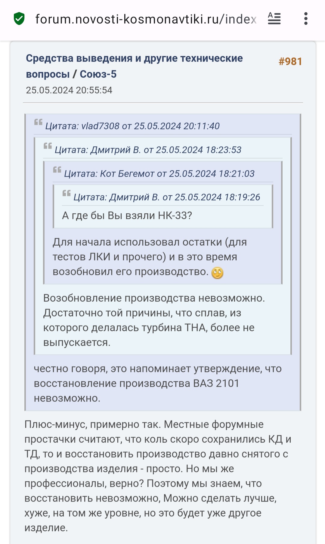 Кстати, это не просто рутинный пуск сраной петарды лёгкого класса и даже не первый пуск поккокмока в 2025. Это последний пуск Союза-2.1В, который использовал запасы НК-33, оставшихся от советской лунной программы, и на котором эти запасы исчерпались (производство прекращено десятилетия назад).