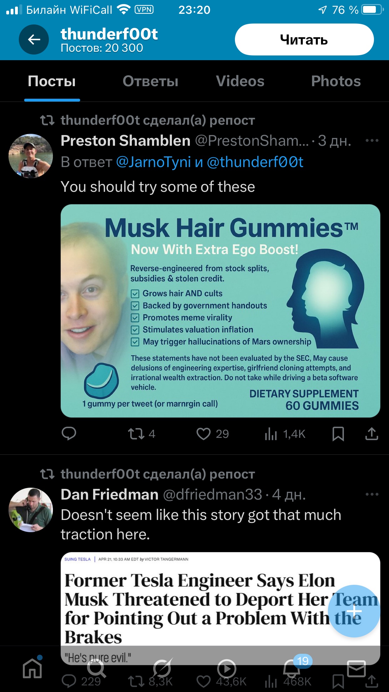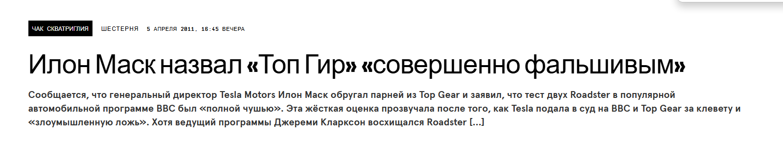 >>806899 >до этого реально был норм мужик Он всю дорогу гнобит рабочих (опять же маскоебы это оправдывали гениальностью), пытается заткнуть рот всем, кто говорит неприятное (пик 1 2011 год) и пиздит, пиздит, пиздит. Просто сейчас у него возможностей намного больше стало, это и само по себе ярче видно, но и в том числе, сейчас это многие подсвечивают, в 10е бы просто игнорили бы, потому что тогда мейнстрим был в облизывании Маска. Вротмненог не даст соврать, как его хуесосили в 7-8 лет назад.