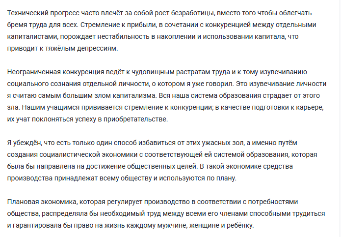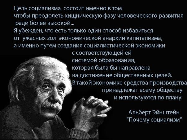 эйнштейн наверно в социо-экономических системах разбирался примерно так же как Илоний в той игре компьютерной которую он стримил. не знаю в курсе ли этого был эйнштейн, но социализм возможен только в тех условиях когда каждый человек до единого является социалистом. а это, очевидно, невозможно