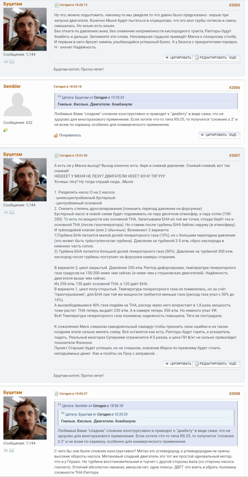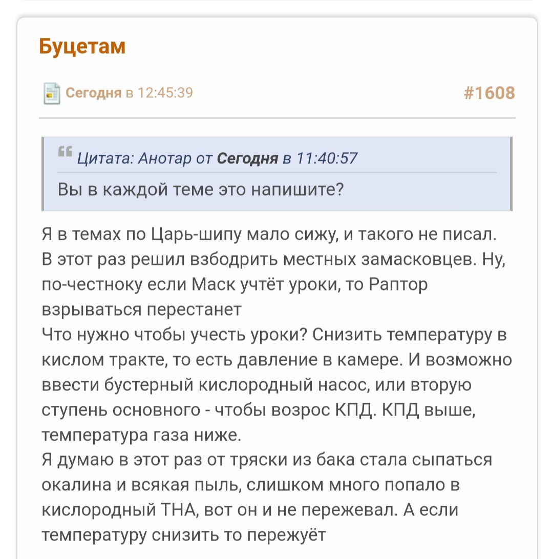 А здесь можно что-то интересное пообсуждать - хотя хз что там обсуждать. Всё как-то по пизде пошло. Но радует, что тягу Рапторов V3 так и оставили в 250 тонн - не смогли они выжать никакие 300 тонн. Просто надежность повысили