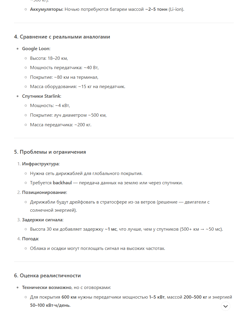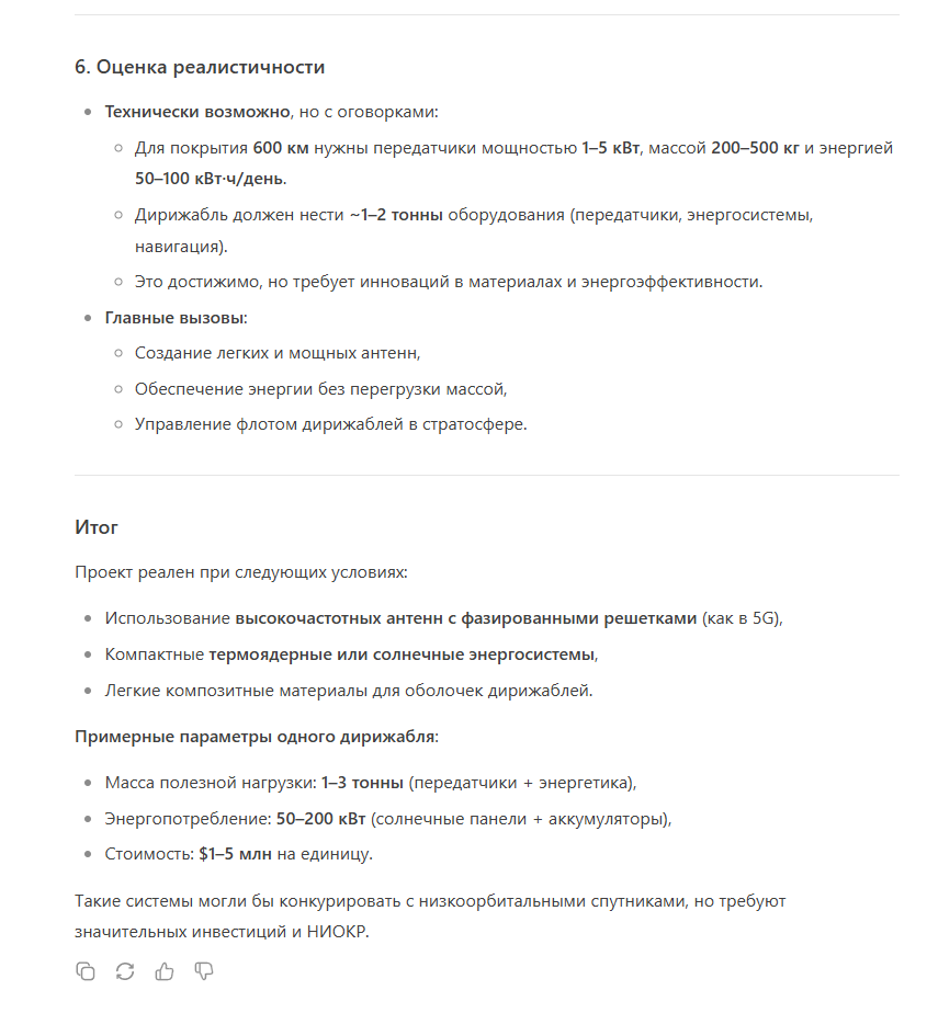 >>808813 Я давал фидбек только по ответу Дип-Сика, который он (анон) туда приложил. С этим HASP я полагаю вопросы будут к его пропускной способности, которая будет абсолютно пососная, из-за того что даже самый охуенный дирижабель не поднимет нужный вес на такую высоту. Видимо, анон в промпте задал условие "технический аналог старлинка"