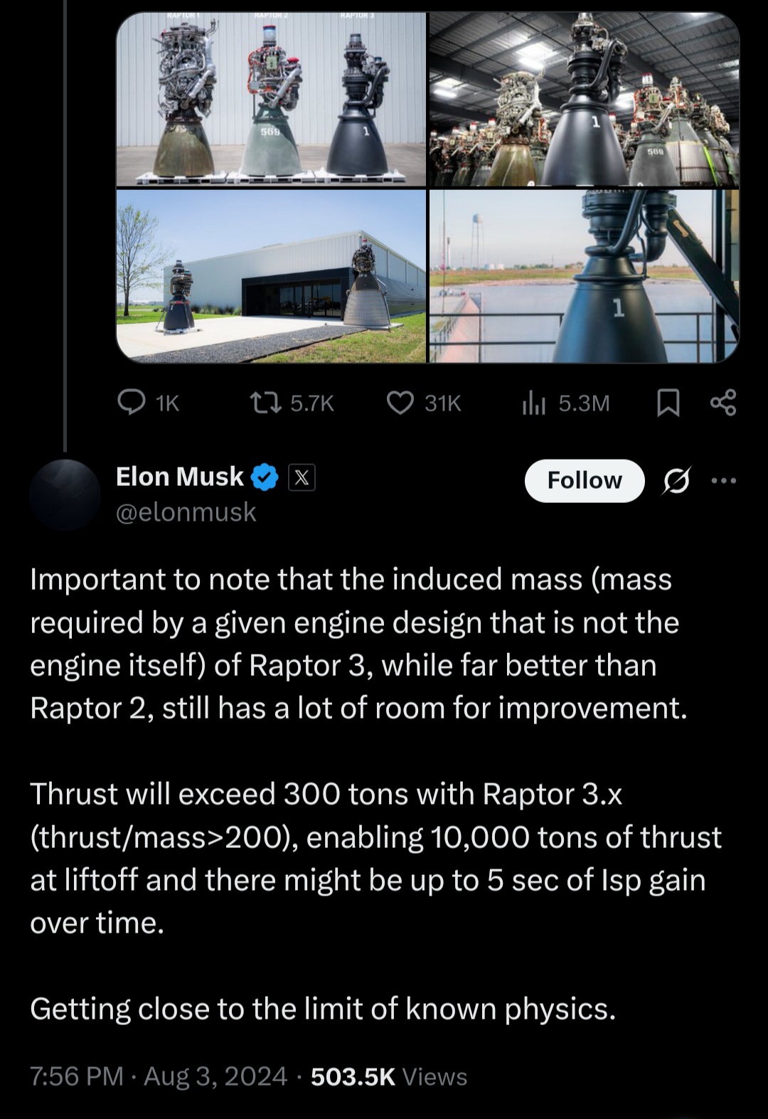 >>808886 Дак блядь ему не до орбиты дотянуть надо - а полезную нагрузку с собой захватить. Потом проблема с Рапторами v2 - Маск же сам признался, что текут как суки. Поэтому на V3 хоть тягу и не увеличили, но фланцы поубирали