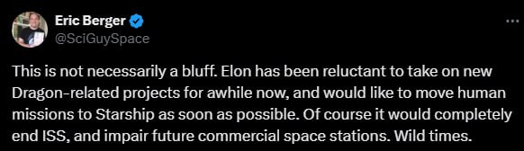В-третьих, сокращённый бюджет NASA сильно бьёт по интересам частных партнёров — они более не могут рассчитывать на серьёзную поддержку, особенно в таком турбулентном климате. Это касается всех ключевых направлений гос контрактов, в первую очередь развивающихся секторов: пусковых услуг, частных станций и пилотируемой космонавтики в целом. При этом, ряд партнёров занимаются проработкой «новых многоразовых ракет тяжёлого класса» по требованию администрации. Белый дом хочет альтернативу Starship. Но место под солнцем стало дороже. Частный сектор более не может рассчитывать на ту поддержку, которая обсуждалась ещё несколько месяцев назад и быстрой альтернативы не будет.